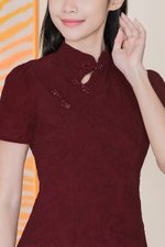 乐 Le Cheongsam Dress (Maroon Embroidery)
