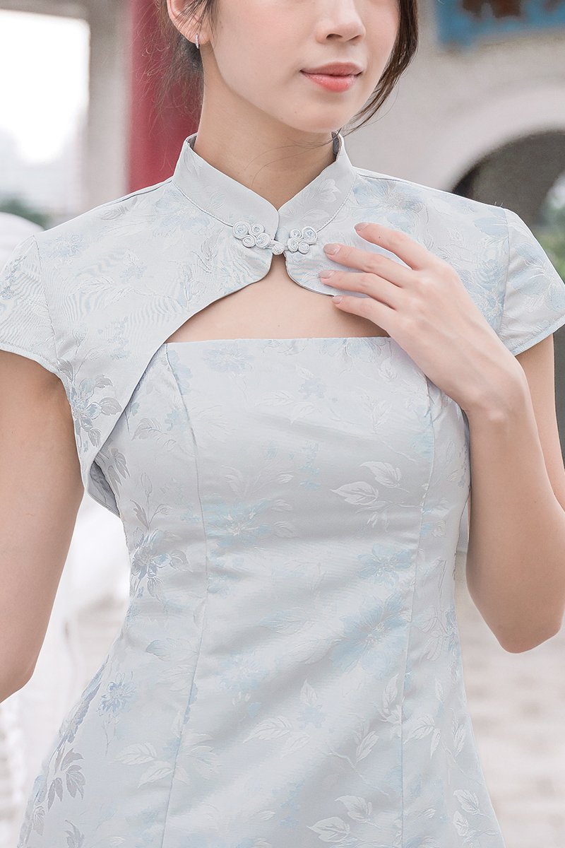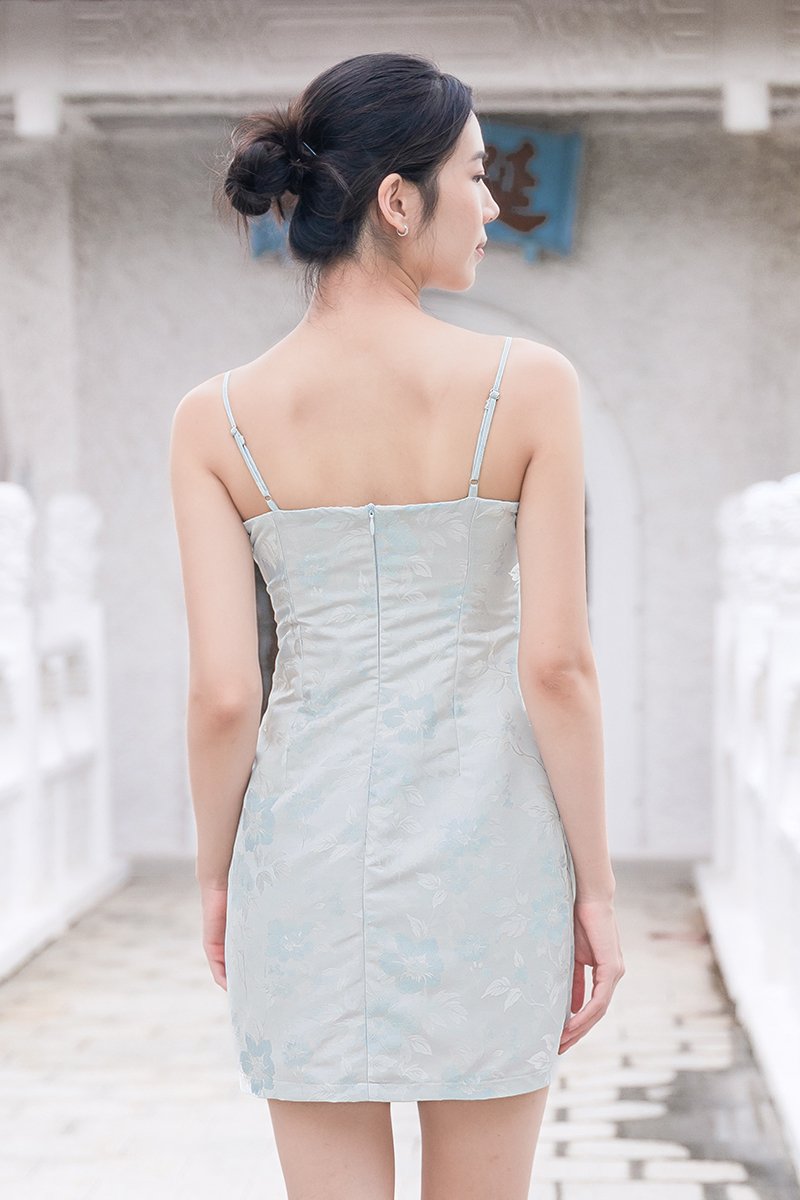 喜 Xi Padded 2-Way Cheongsam Mini Dress (Whispering Blue Fleur)