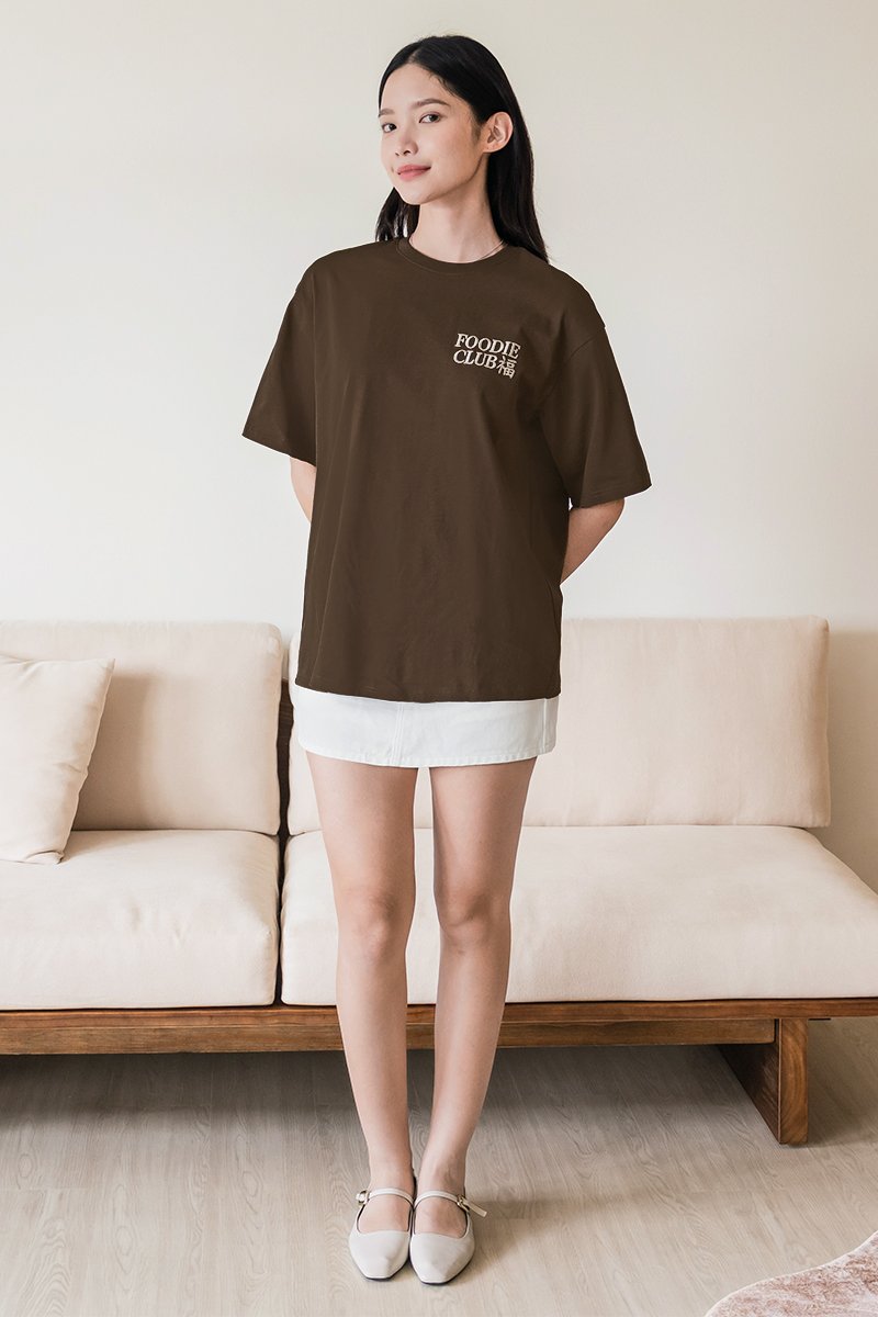 福 Foodie Club Oversize Unisex Tee (Coffee)