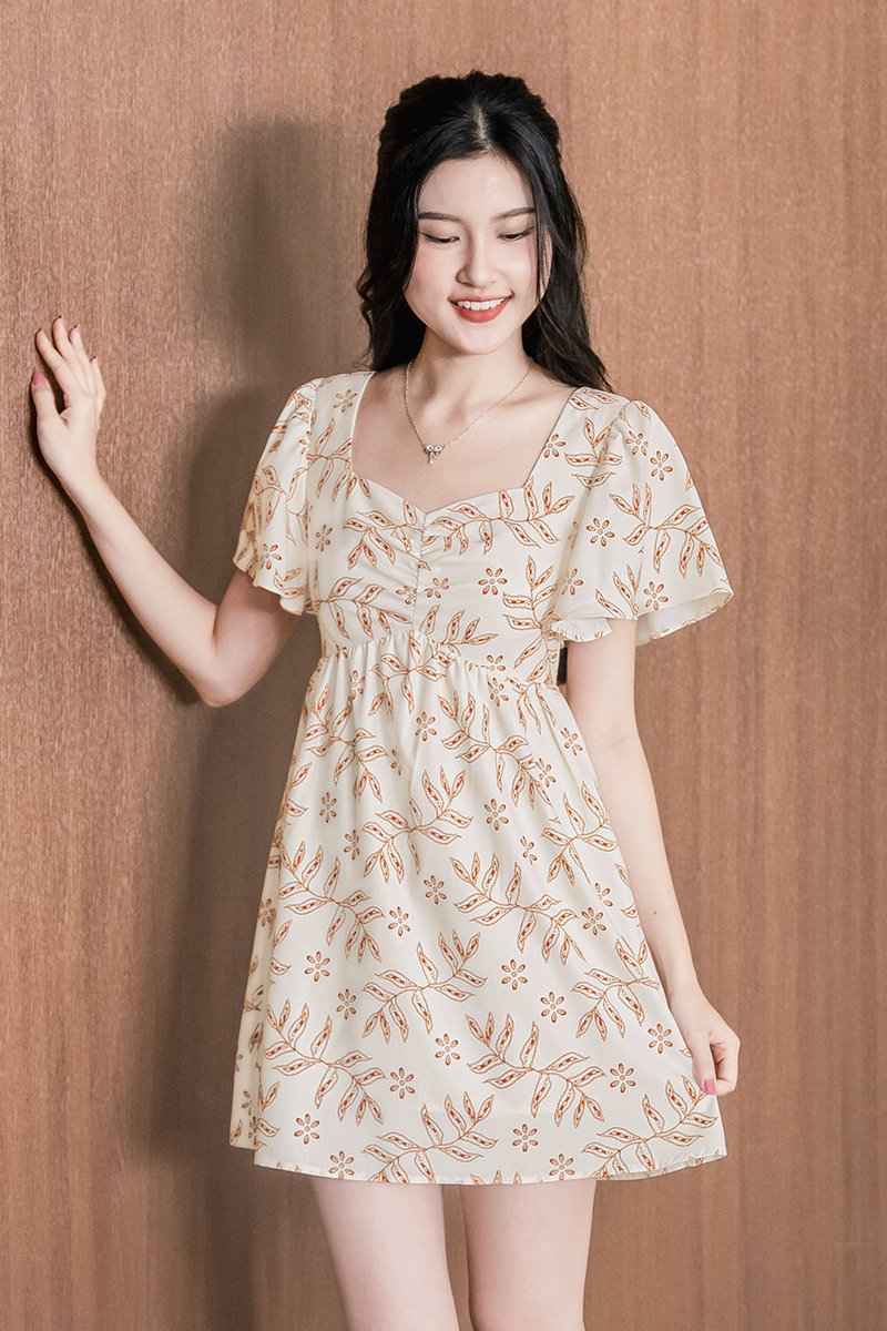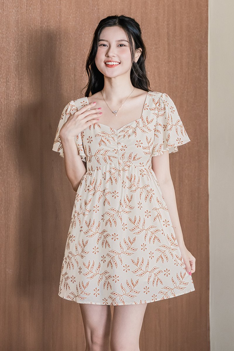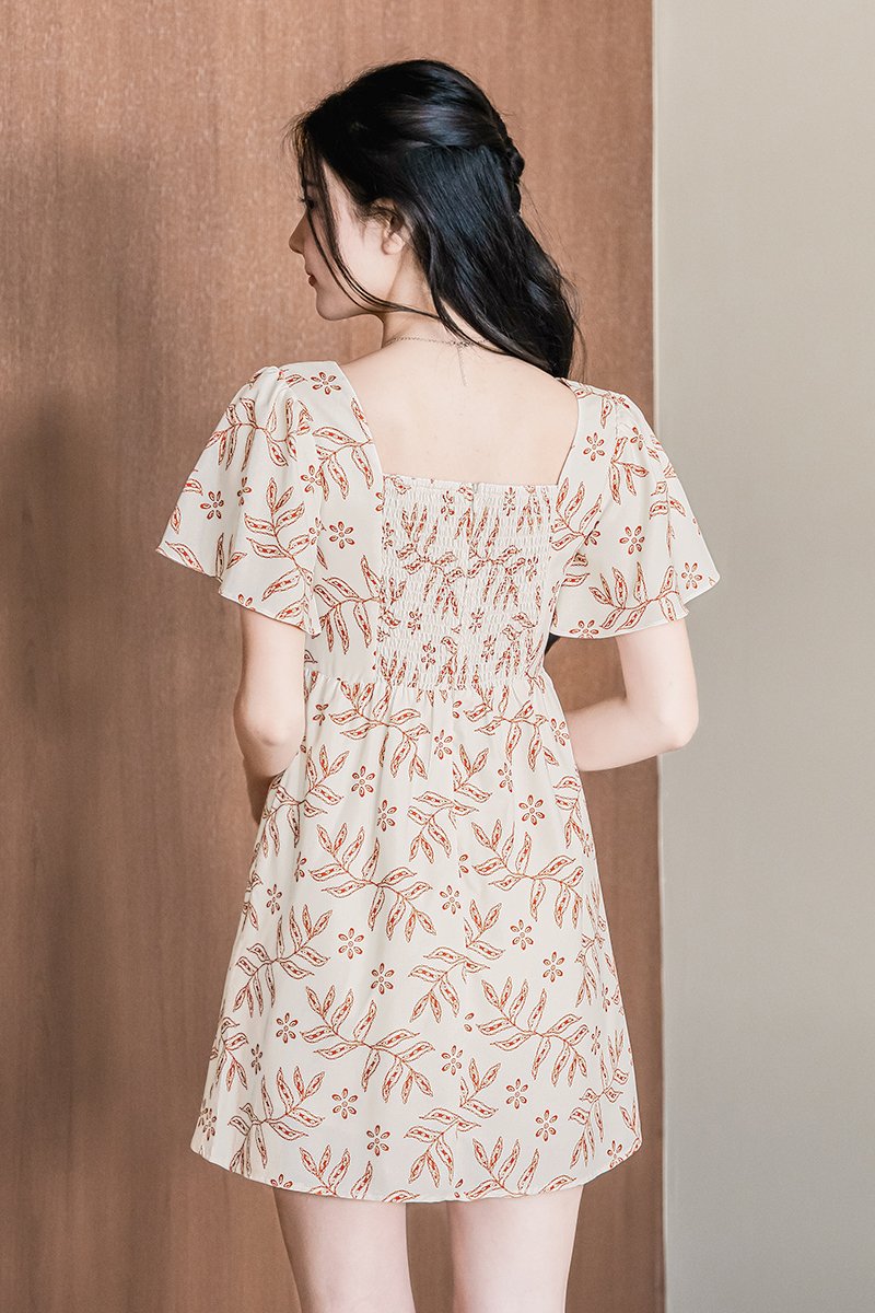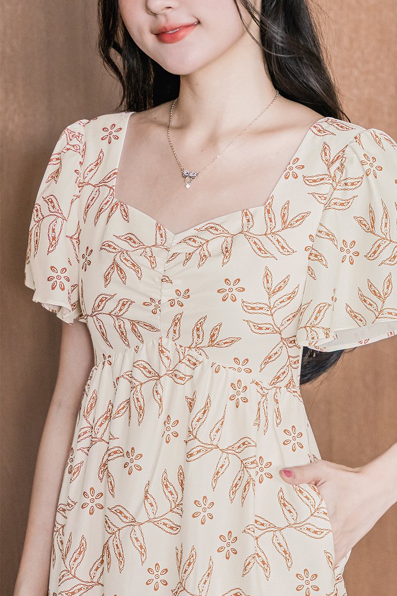 Angela Flutter Sleeve Babydoll Romper Dress (Rust Opulent)