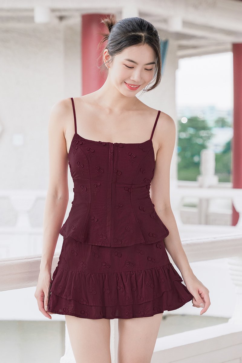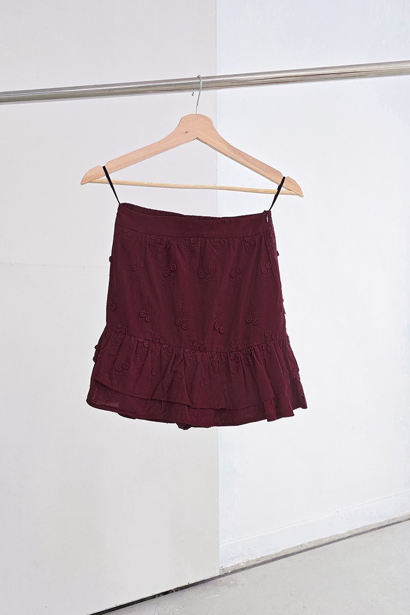 Aria Elasticised Flutter Skorts (Maroon Embroidery)