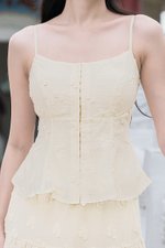 The Aria top blends classic corset charm with modern ease. The intricate 3D embroidery adds depth to the look, while the adjustable straps and smocked back ensure a comfortable and flattering fit for all — perfect for brunches, casual outings, or evening gatherings.