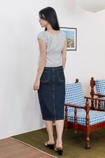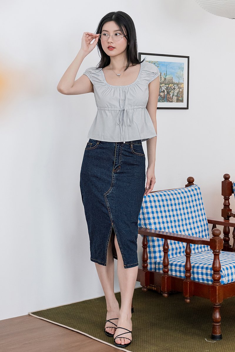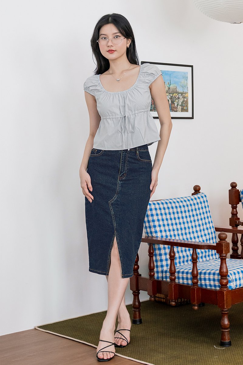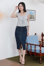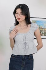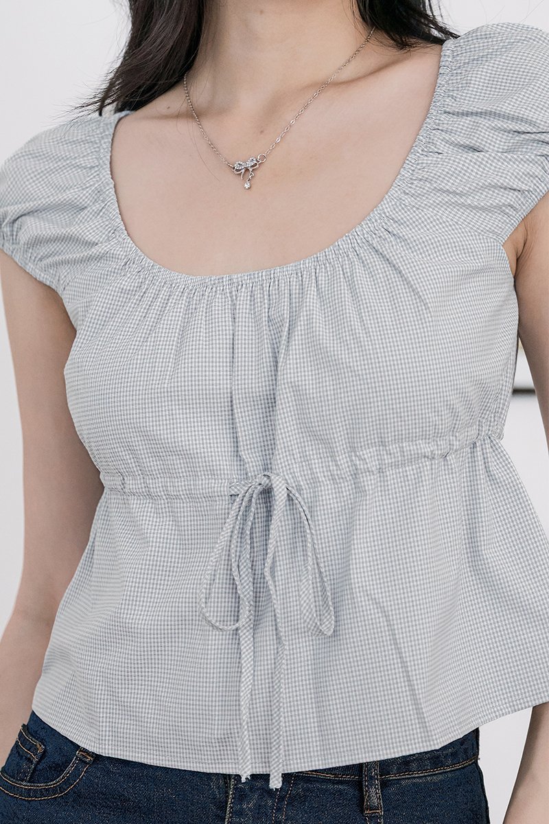 Bailey Cap Sleeve Drawstring Top (Grey Gingham)