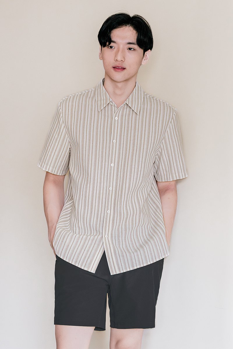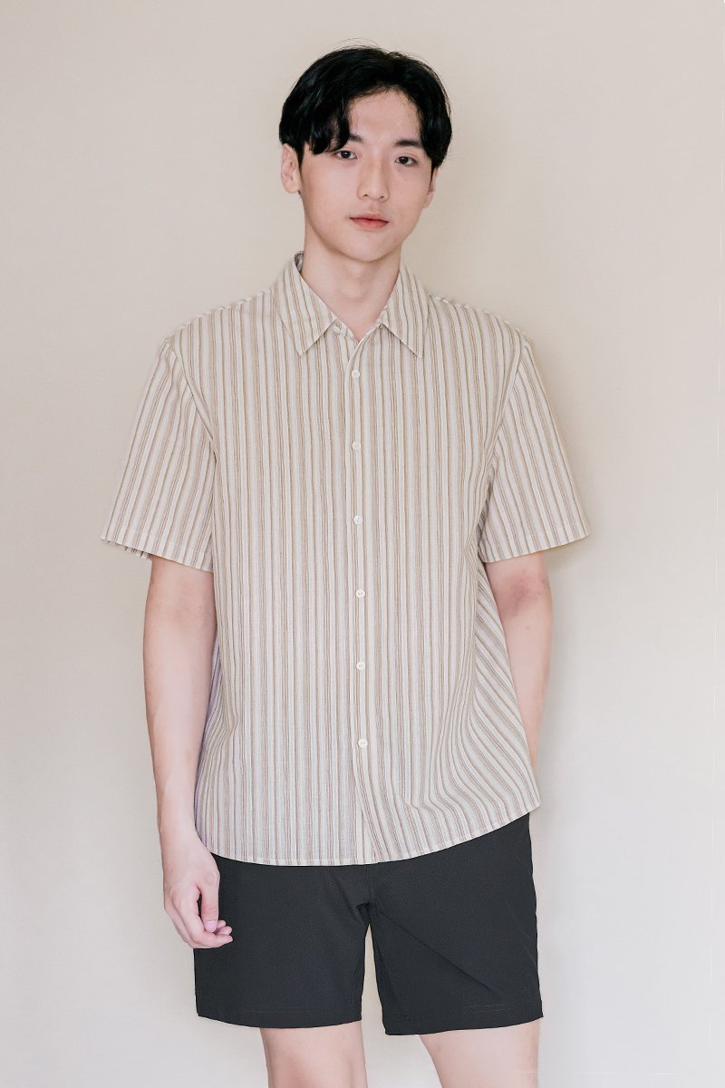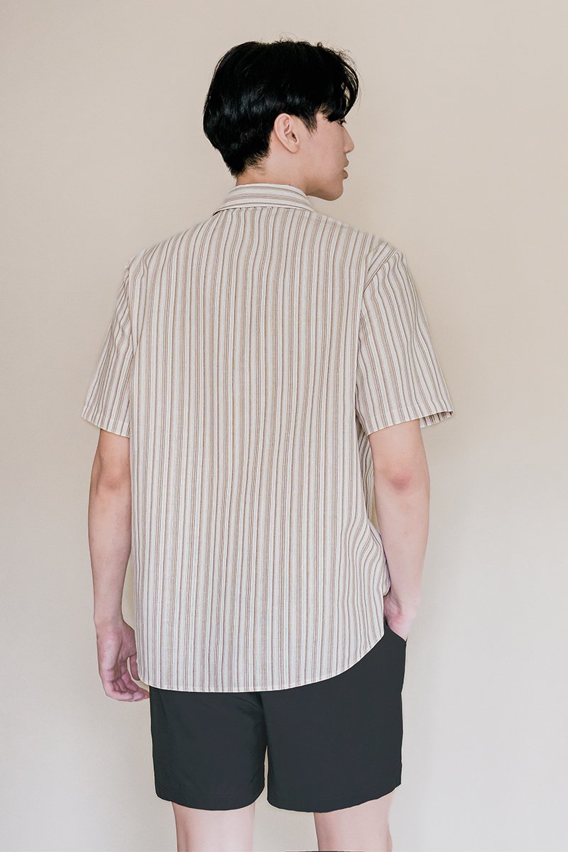 Benjamin Oversize Collar Shirt (Brown Stripes)