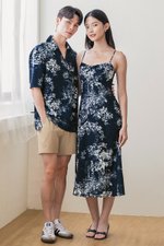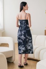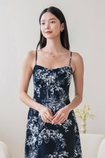 Brianna Padded Sweetheart Tie-Back Midi Dress (Midnight Earthy Bliss)