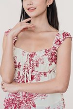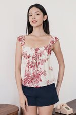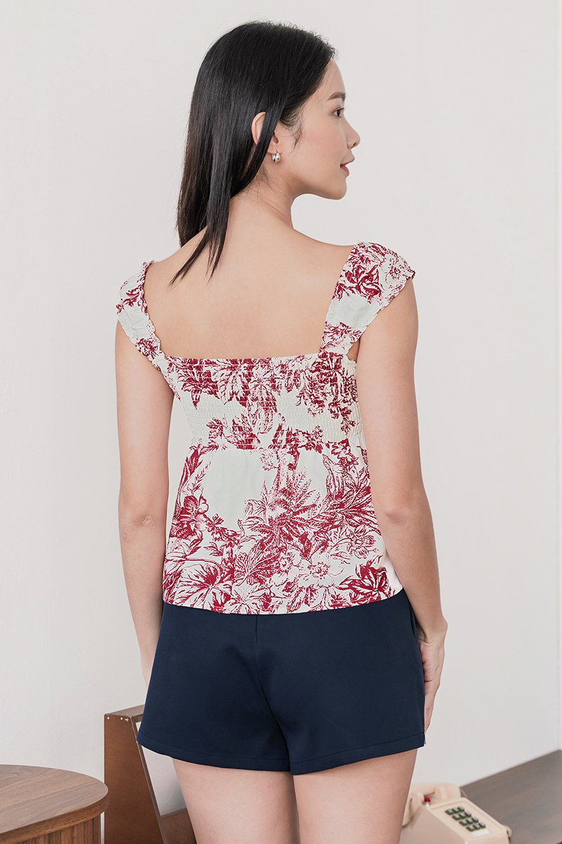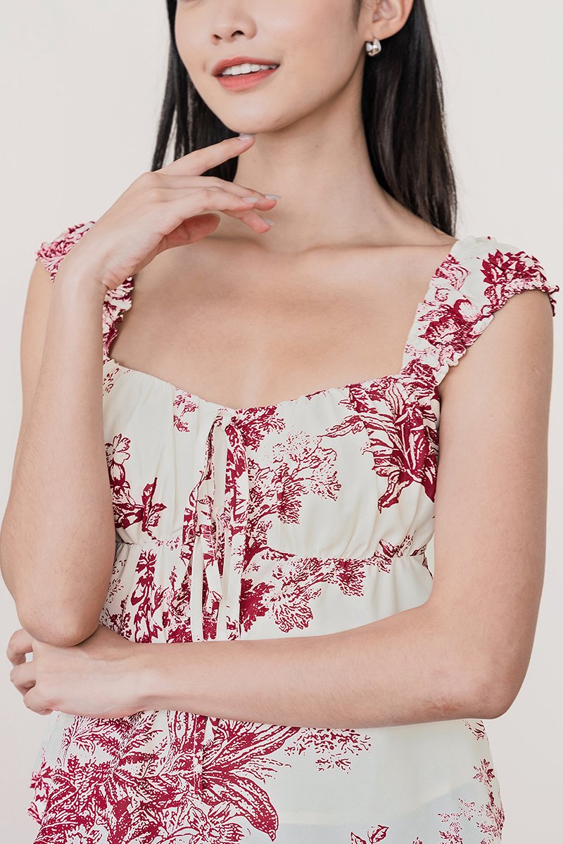 Britney Padded Cap Sleeve Babydoll Top (Maroon Earthy Bliss)