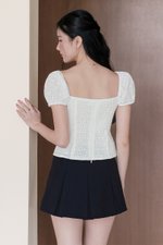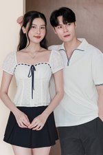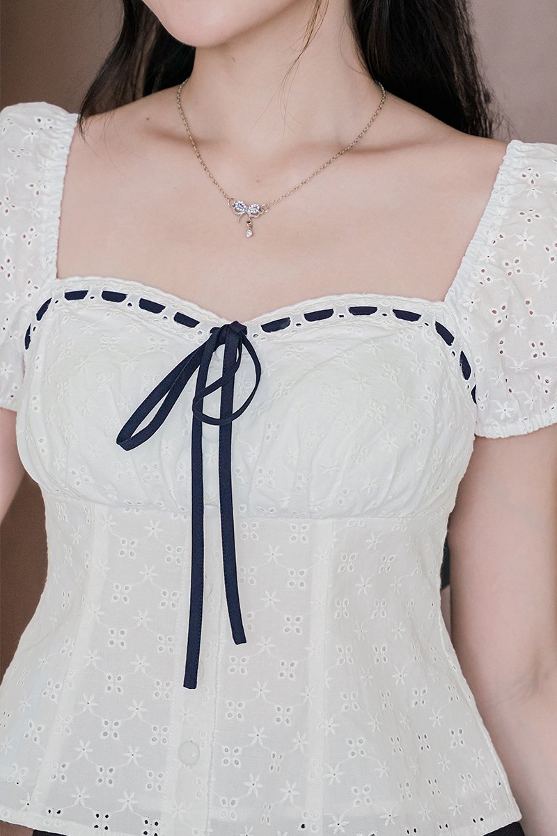 Chloee Padded Contrast Ribbon Babydoll Top (White)