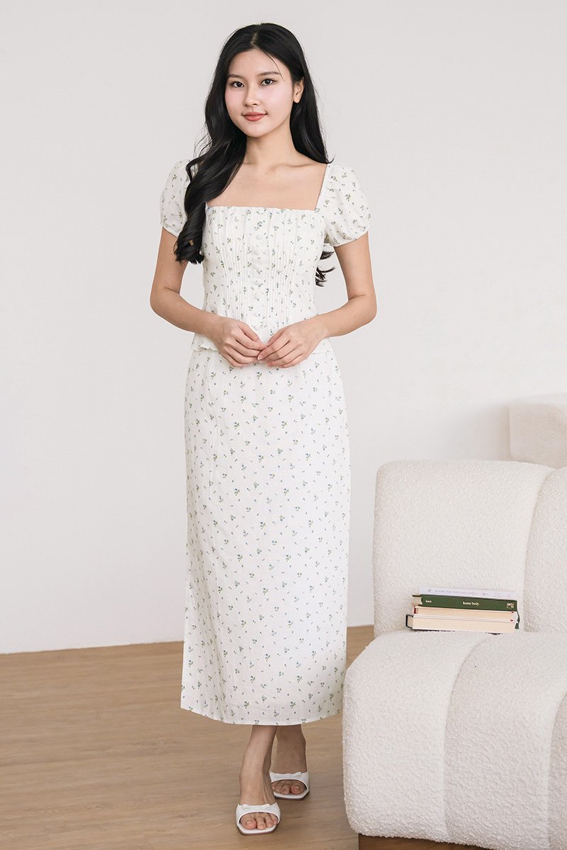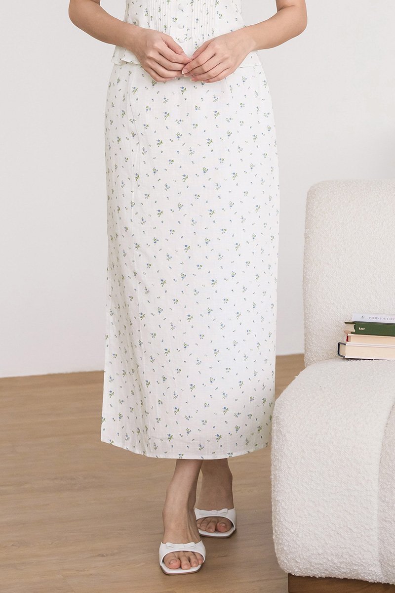 Clover Side Slit Midaxi Skirt (Cornflower Garden)