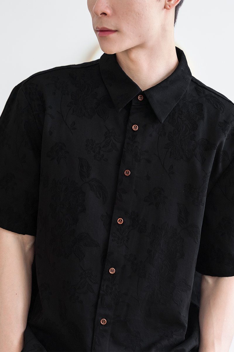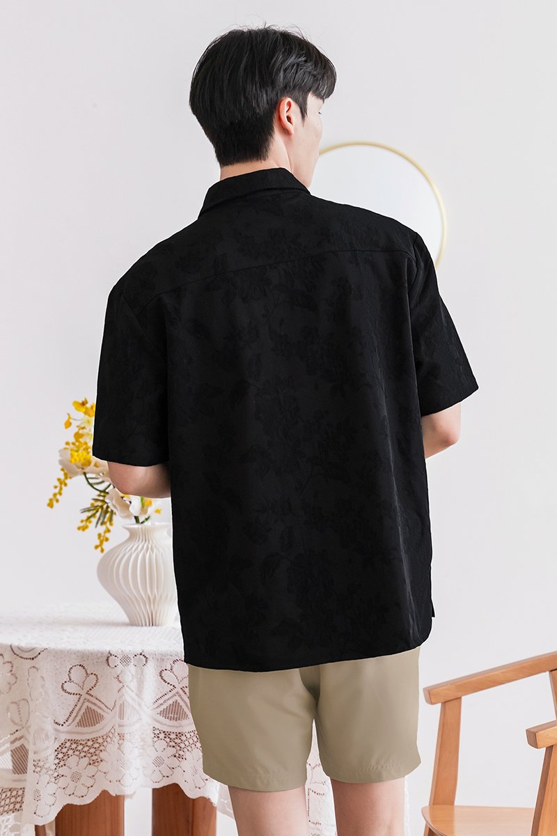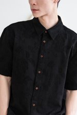 An effortless oversized shirt elevated with embossed textures that spread organically across the fabric, adding depth and character to its clean silhouette. Finished with a statement collar and wooden buttons, it’s a piece that feels both grounded and refined.