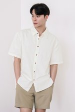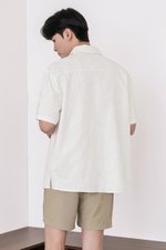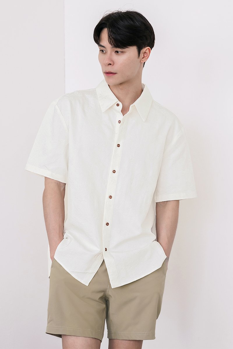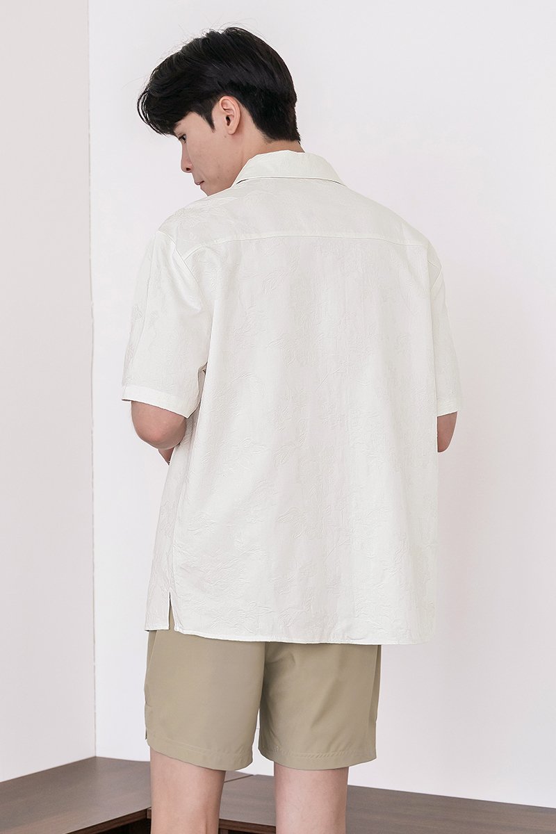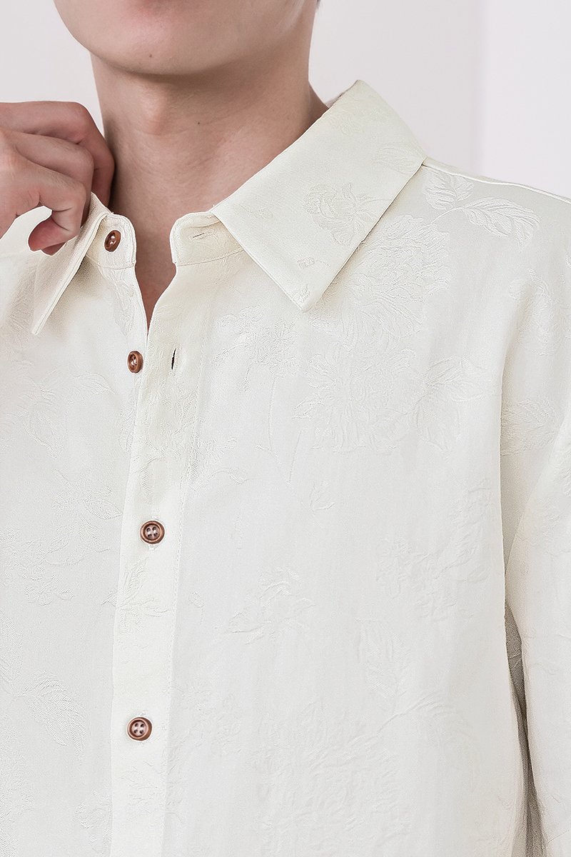 An effortless oversized shirt elevated with embossed textures that spread organically across the fabric, adding depth and character to its clean silhouette. Finished with a statement collar and wooden buttons, it’s a piece that feels both grounded and refined.