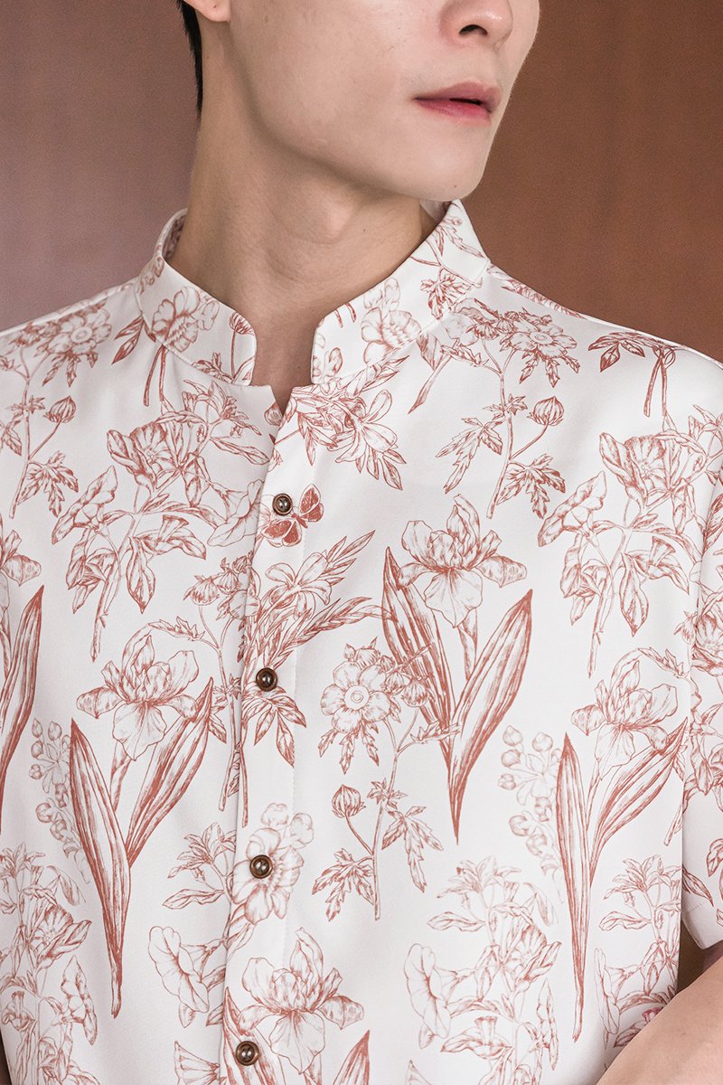 Dan Mandarin Collar Shirt (Brick Red Enchanted Reverie)