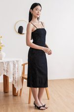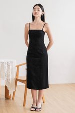 Subtle embossed linen lends a touch of romance to this minimalist column dress, striking the perfect balance between polished elegance and everyday charm — a timeless choice for workdays, brunch dates, or evening occasions.