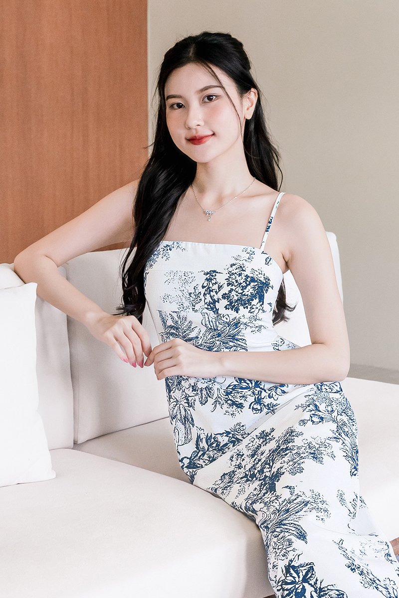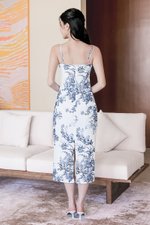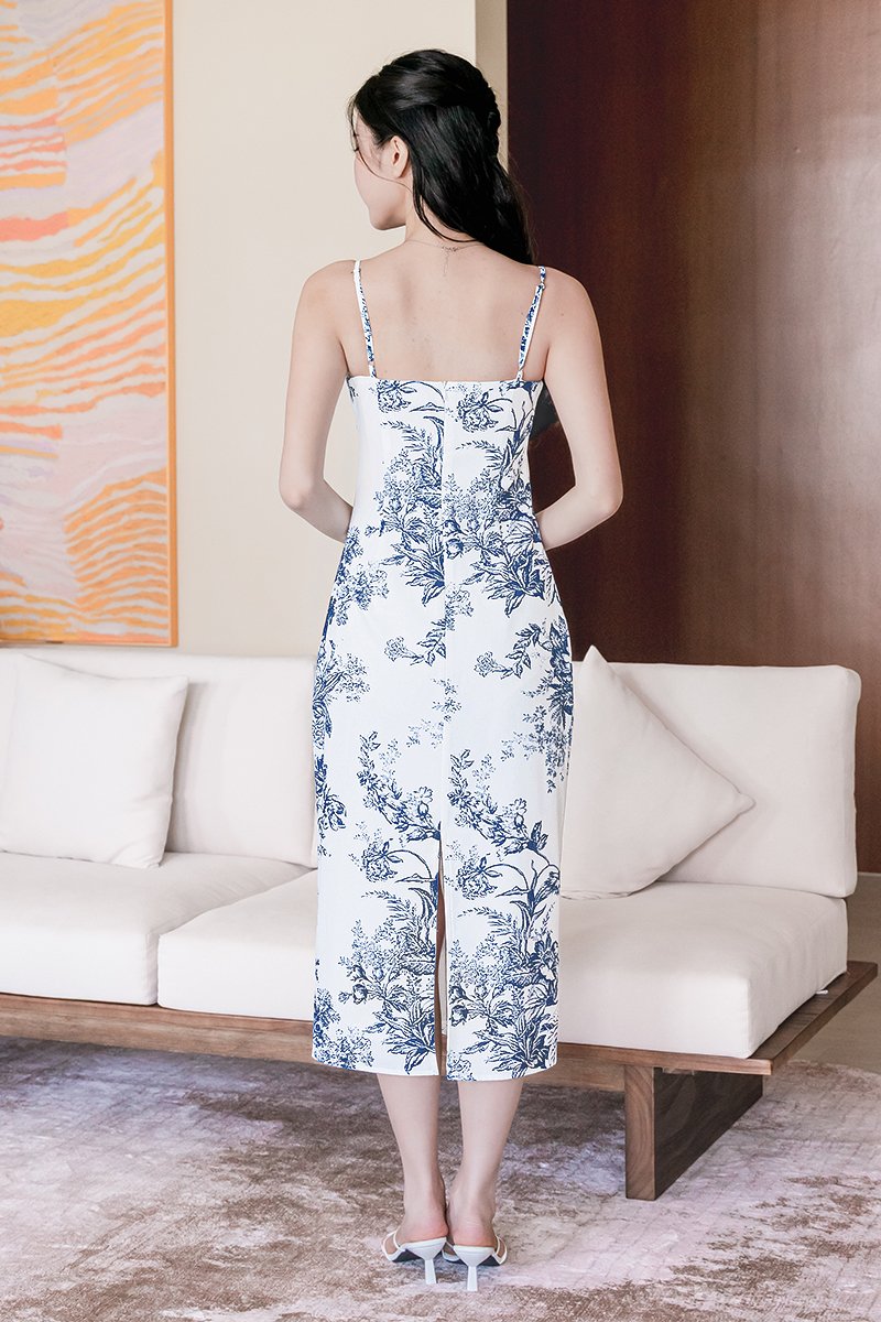 Dania Padded Column Midi Dress (Navy Earthy Bliss)
