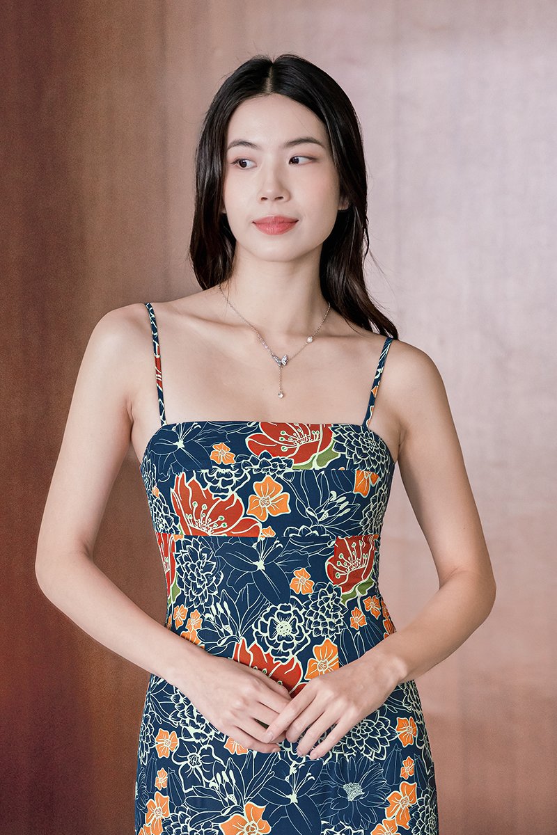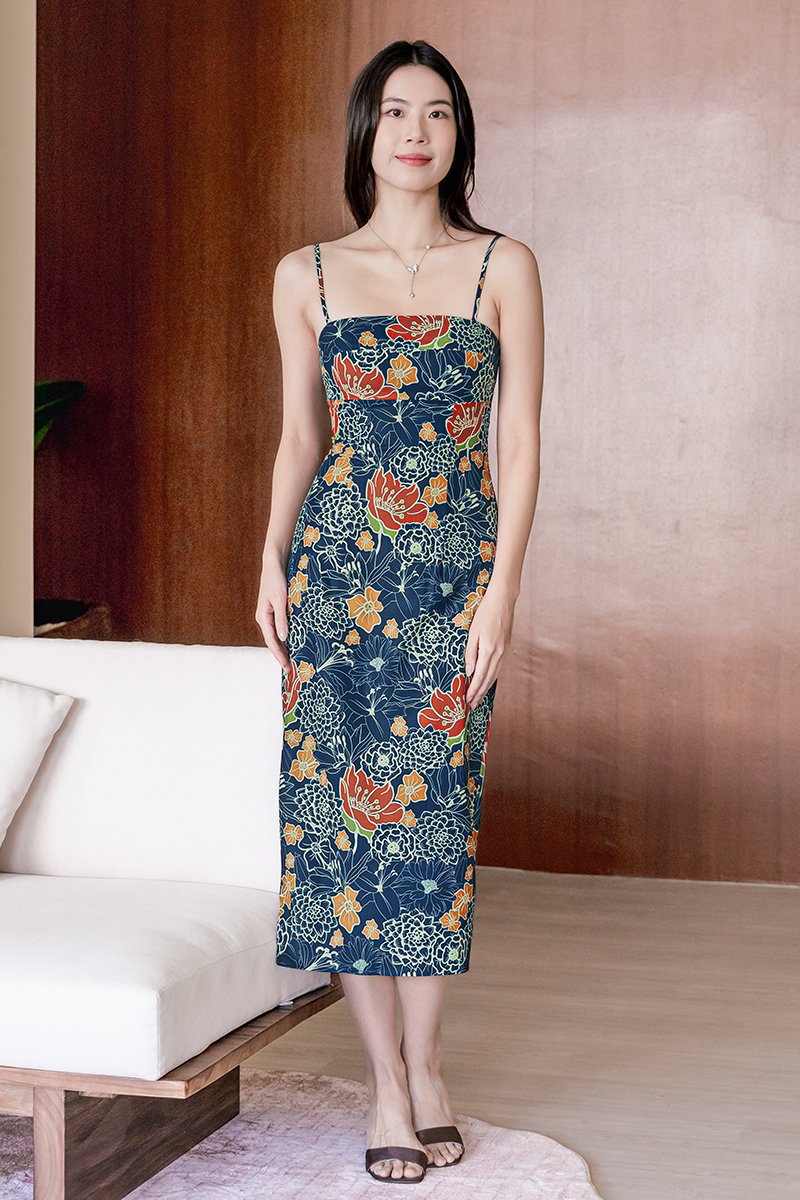 Dania Padded Column Midi Dress (Royal Peranakan)