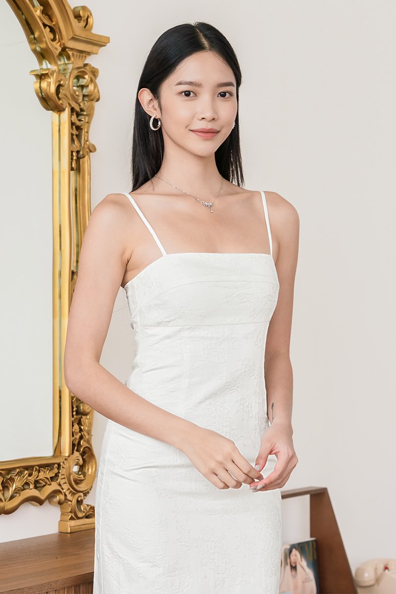 Dania Padded Column Midi Dress (White Orient)