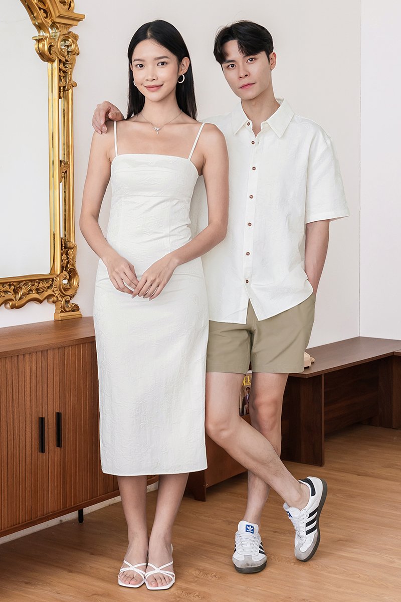 Subtle embossed linen lends a touch of romance to this minimalist column dress, striking the perfect balance between polished elegance and everyday charm — a timeless choice for workdays, brunch dates, or evening occasions.