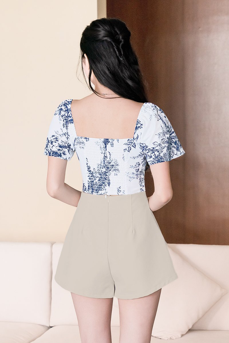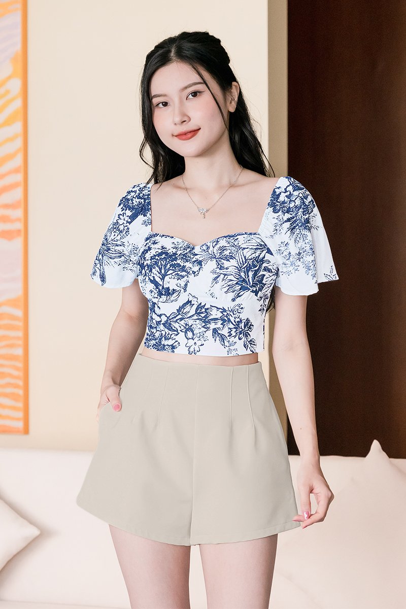 Daniella Padded Flare Sleeve Top (Navy Earthy Bliss)