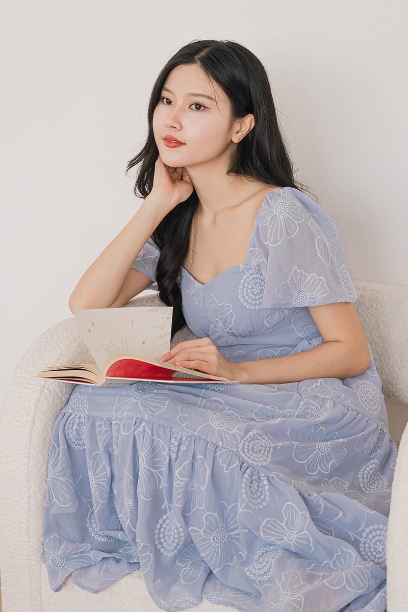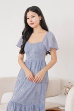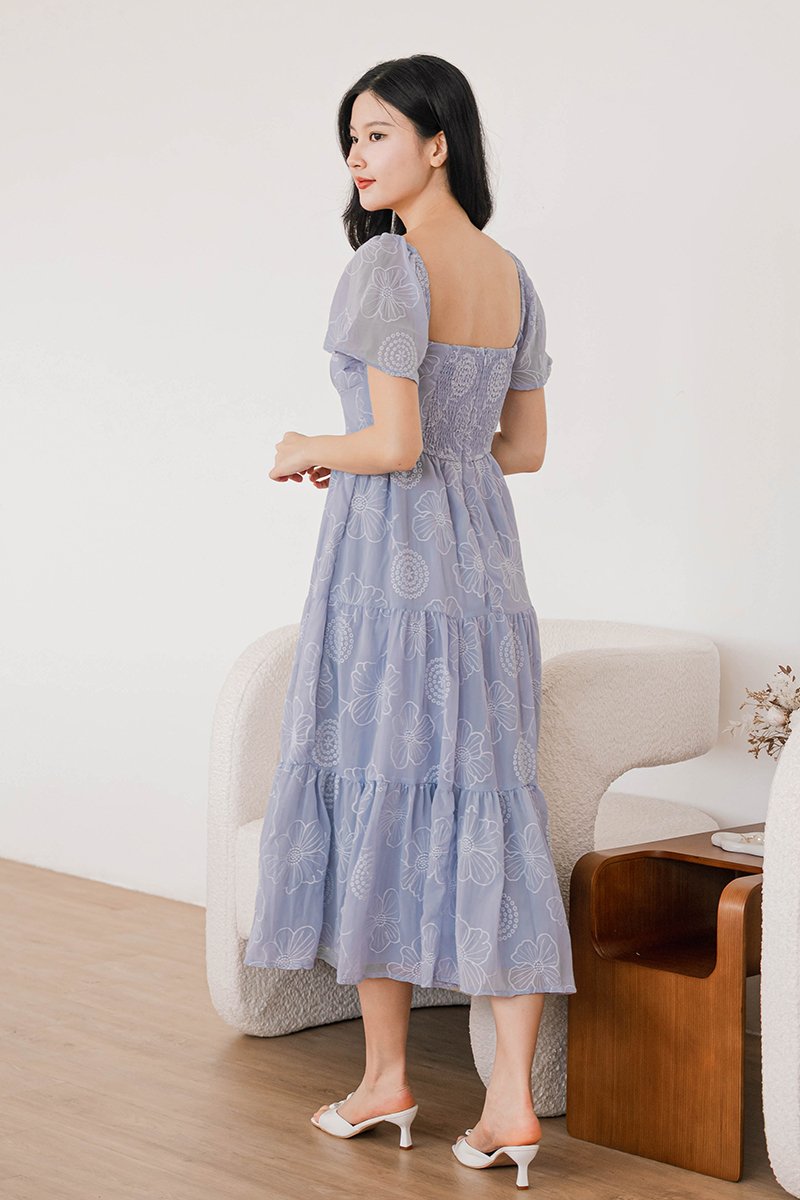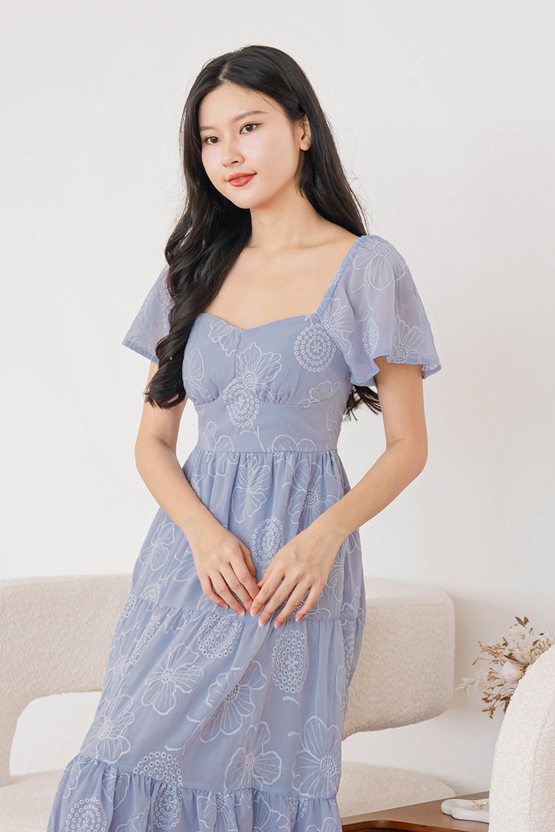 Darlene Padded Flutter Sleeve Embroidery Midi Dress V2 (Lavender)