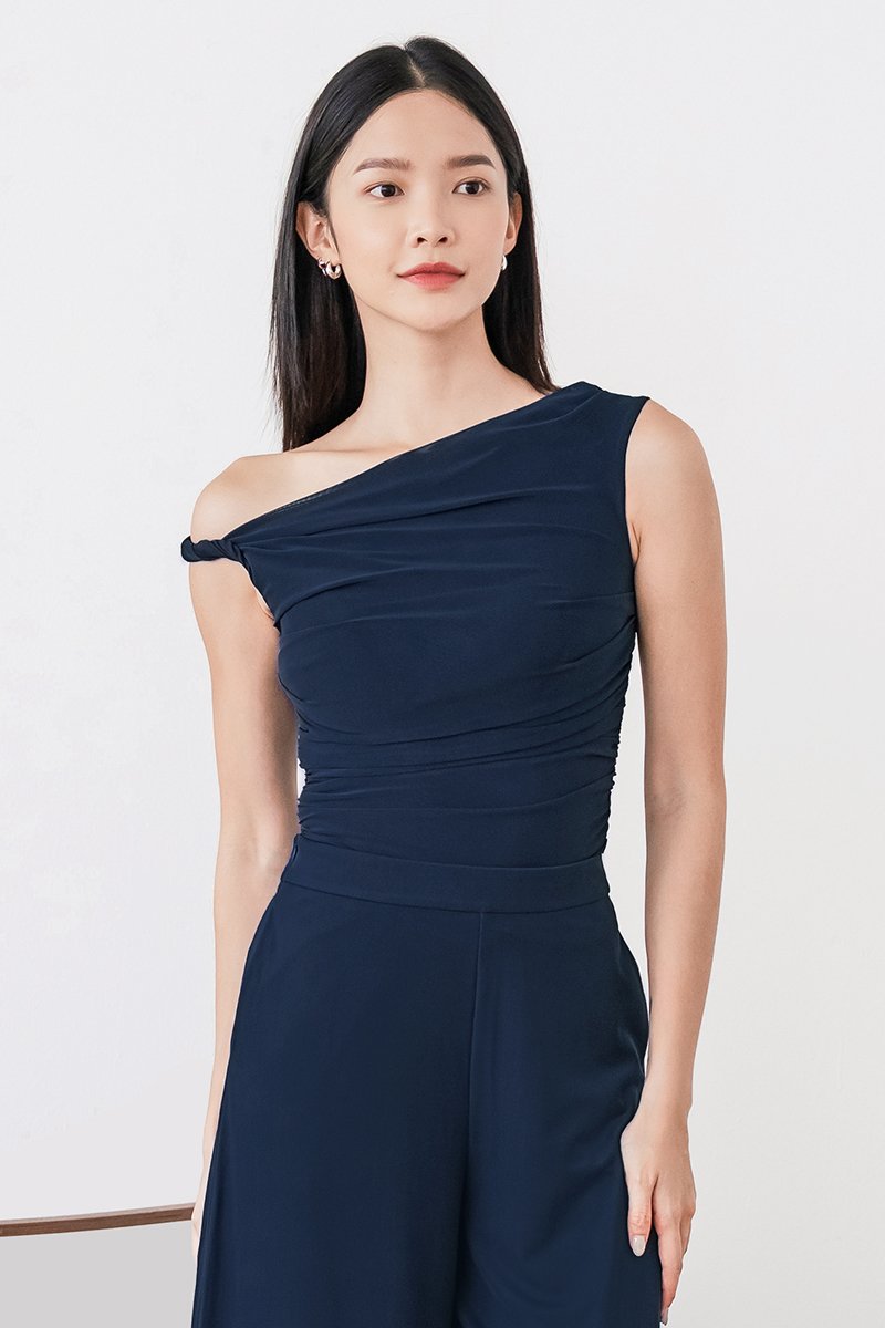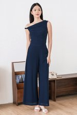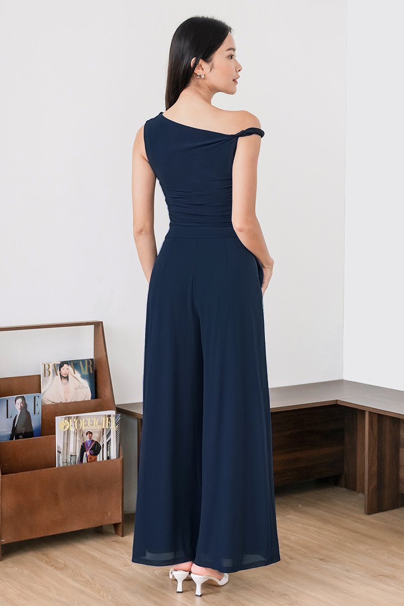 Drea Mesh Wide Leg Palazzo Pants - Petite (Navy)