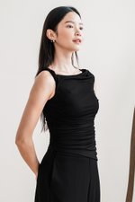 Drea Padded Ruched Twist Strap Top (Black)