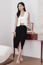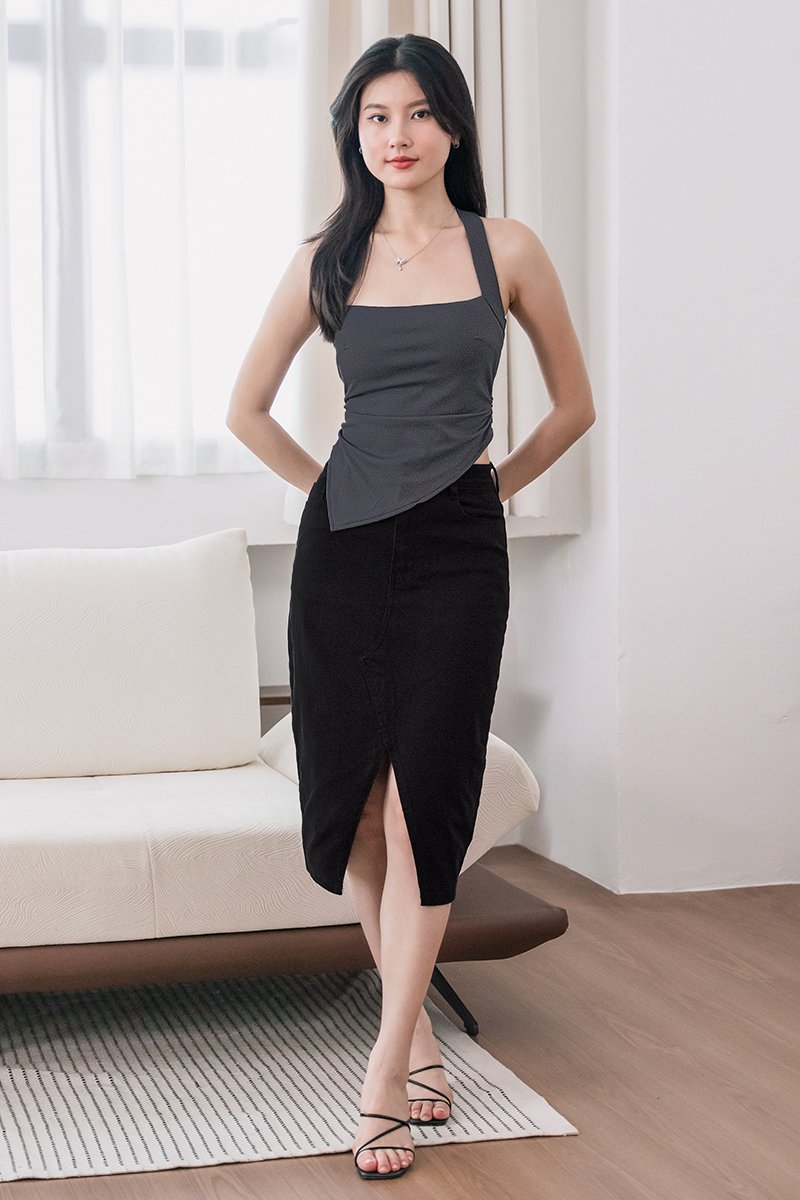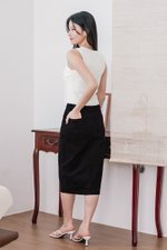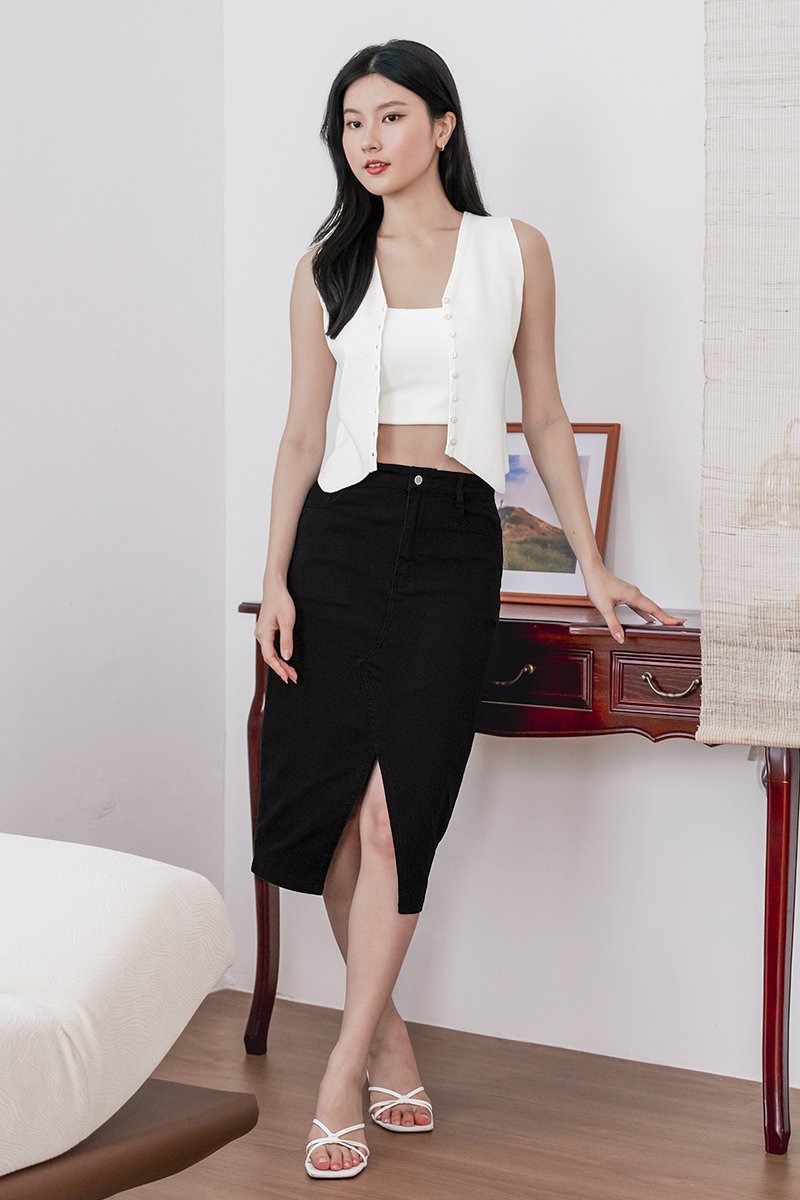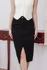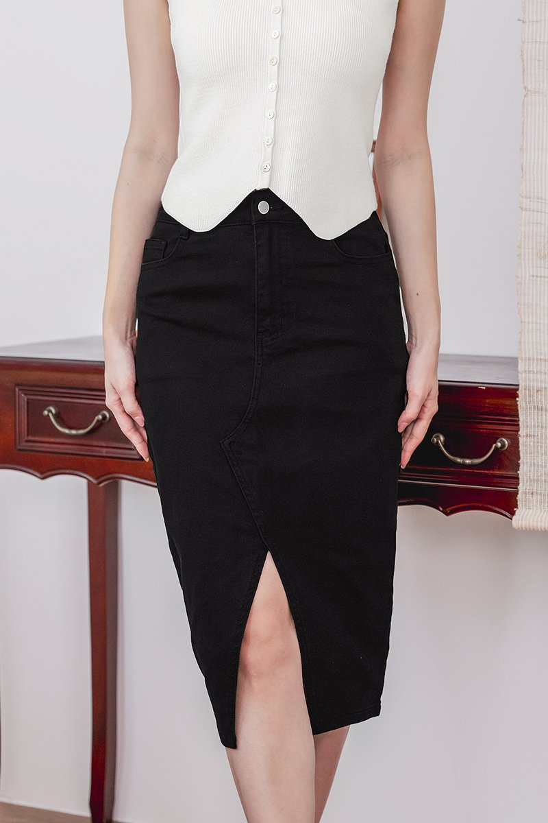 Glenda Denim Midi Slit Skirt V2 (Black Denim)