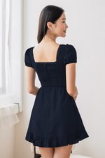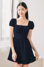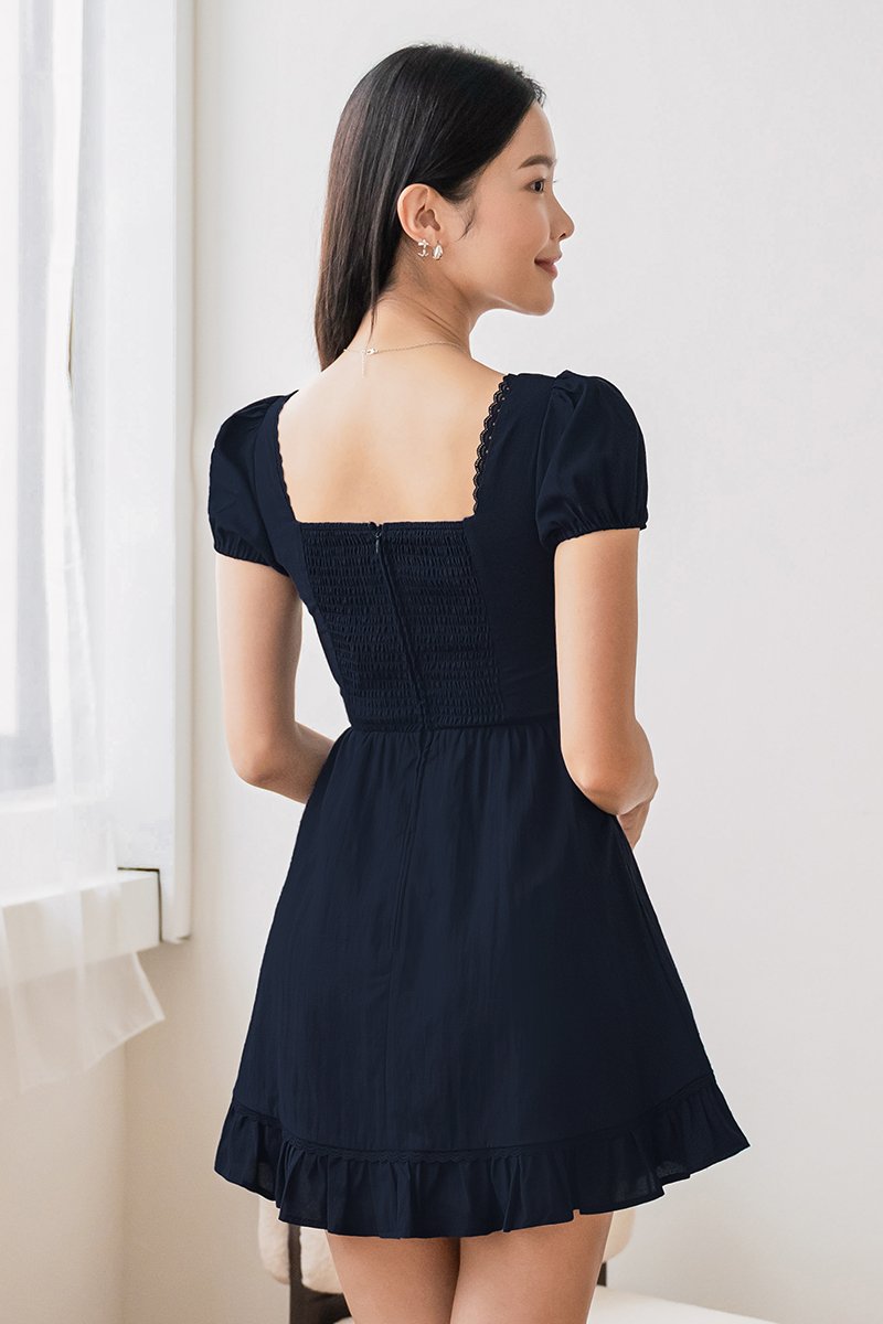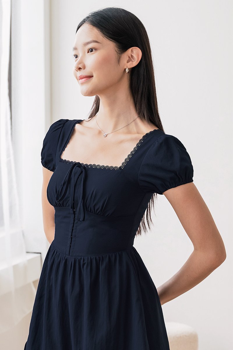 Hazelle Padded Corset Puff Sleeve Dress (Midnight)