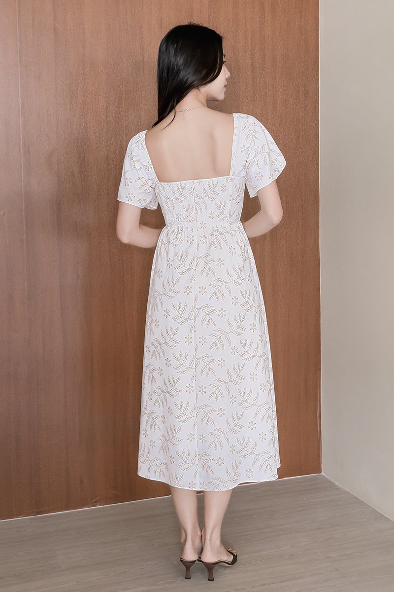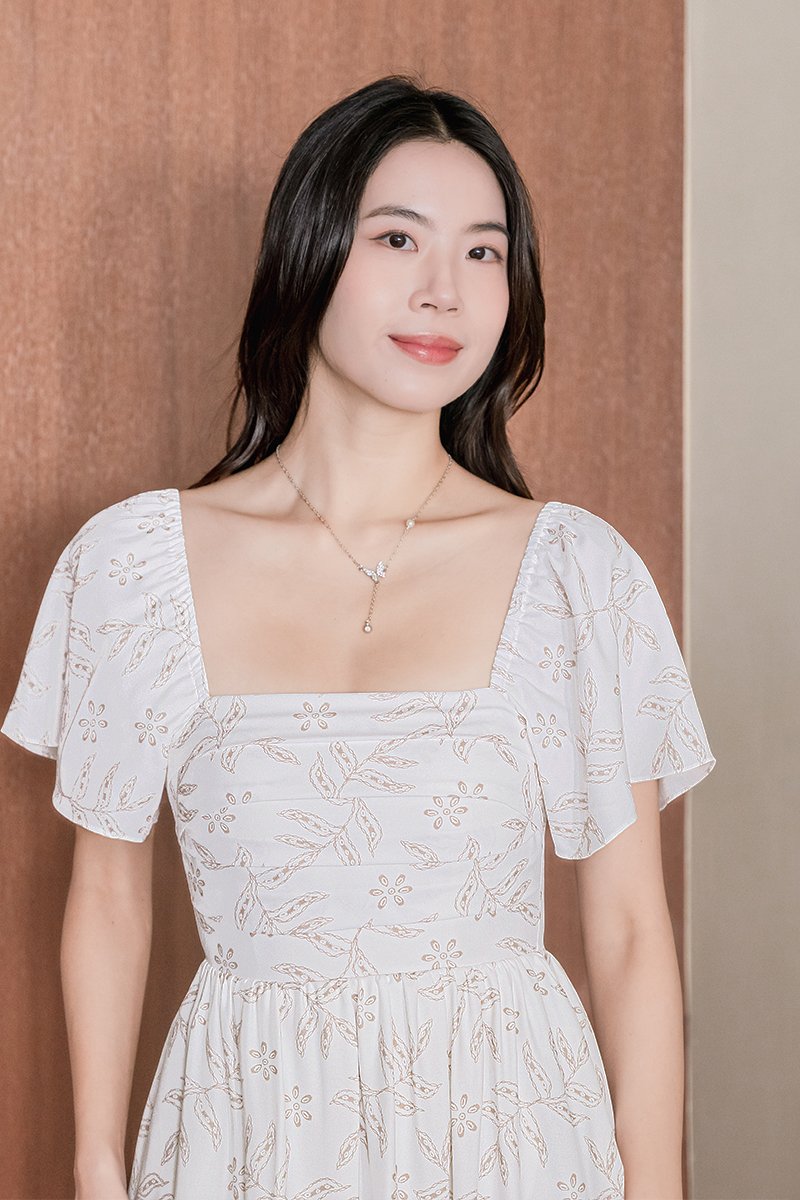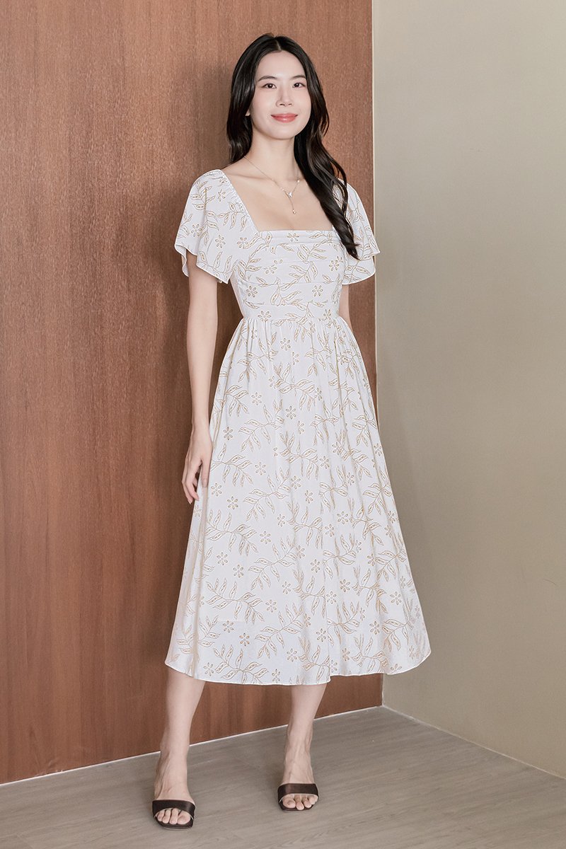 Your favourite silhouette is back! With removable padding added for this version, this flattering midi dress features flutter sleeves, a wide neckline, folded details at the bust and a flare. What's not to love about this dreamy piece?