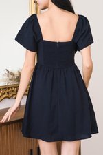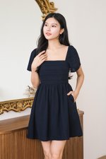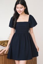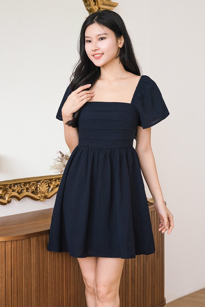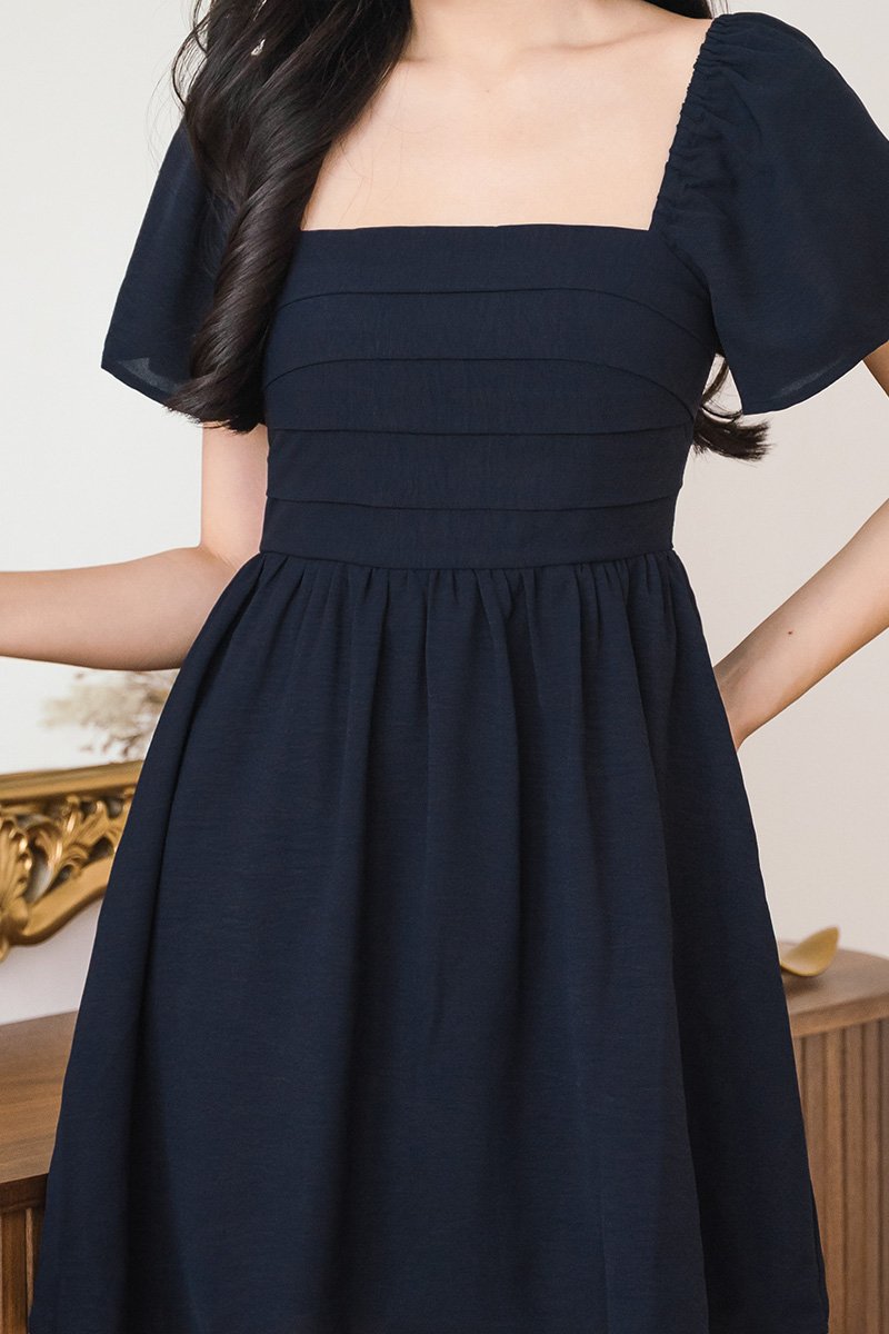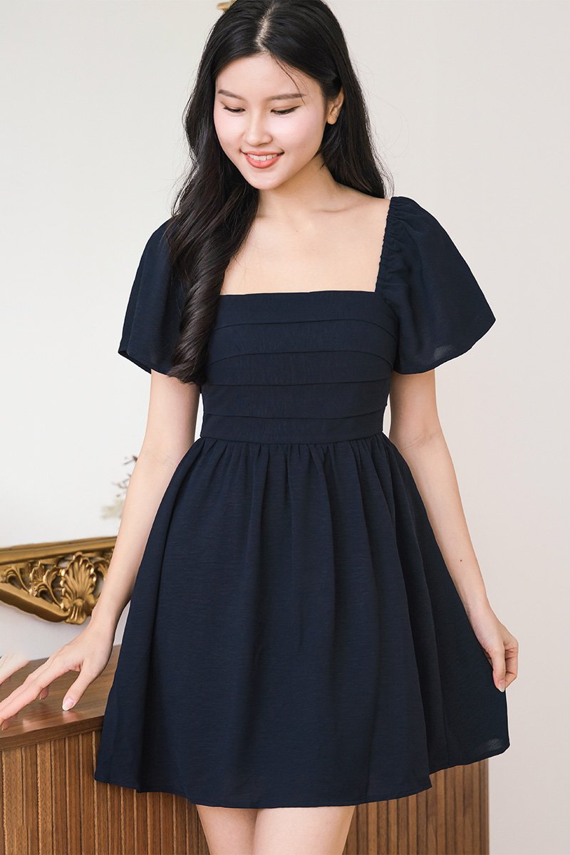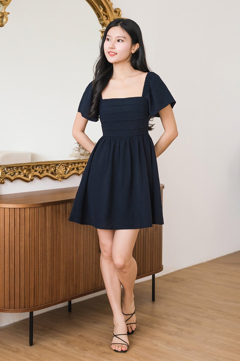 Hera Padded Flutter Sleeve Folds Dress (Midnight)