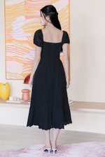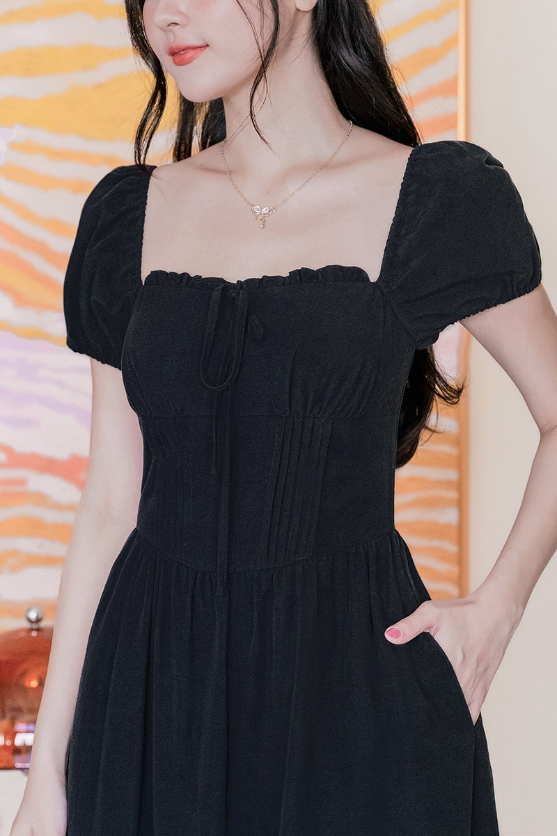 Herena Padded Puff Sleeve Pintuck Midaxi Dress (Midnight)