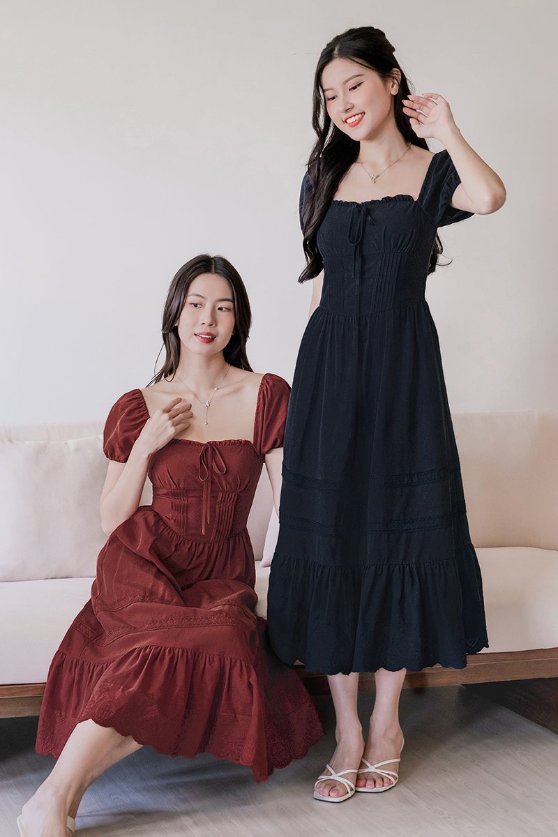 Meet the sister of Hannah — Herena brings a softer, more romantic mood with her tiered details and graceful midaxi length. Think of her as Hannah’s elegant counterpart — longer, gentler, and made for slow weekends that turn into late dinners. Sweet yet refined, she’s the kind of dress that captures quiet beauty with every step.