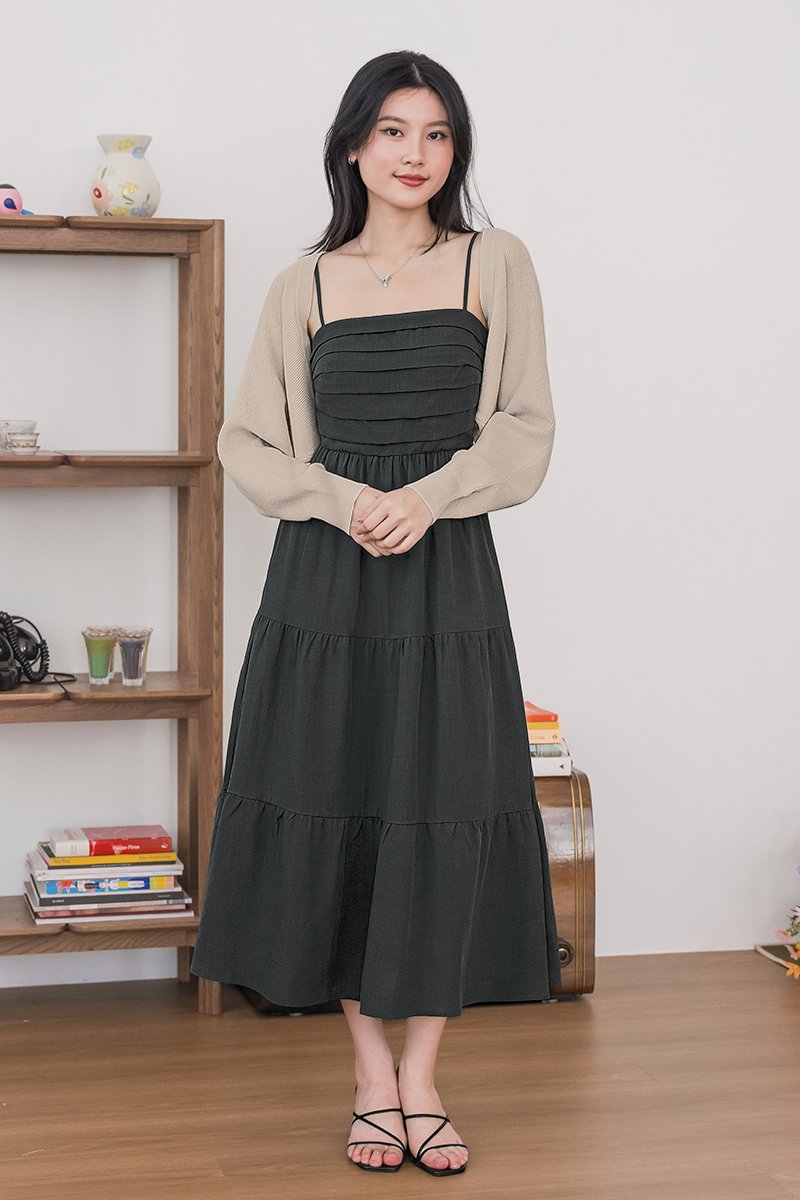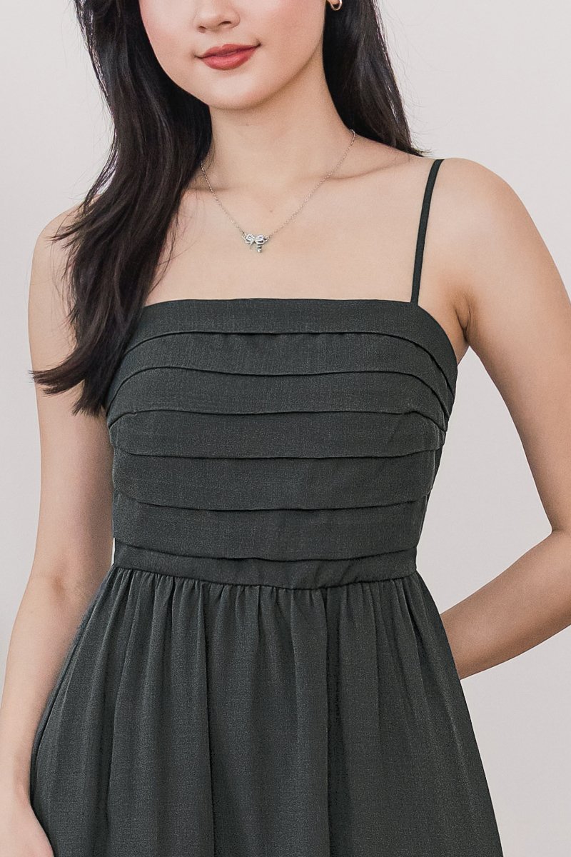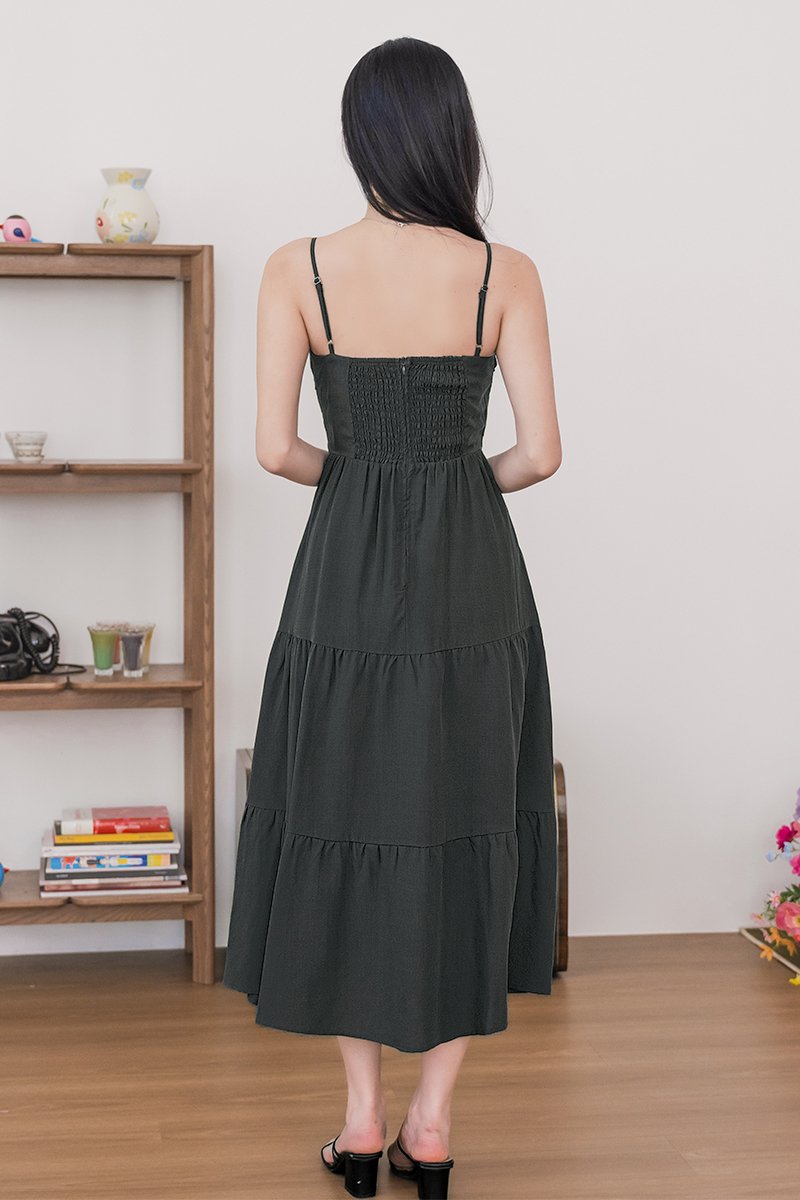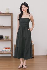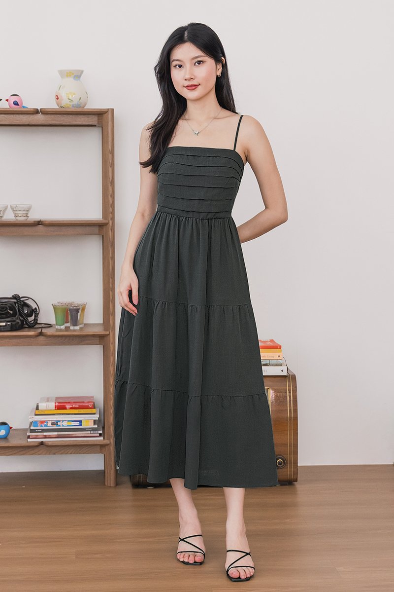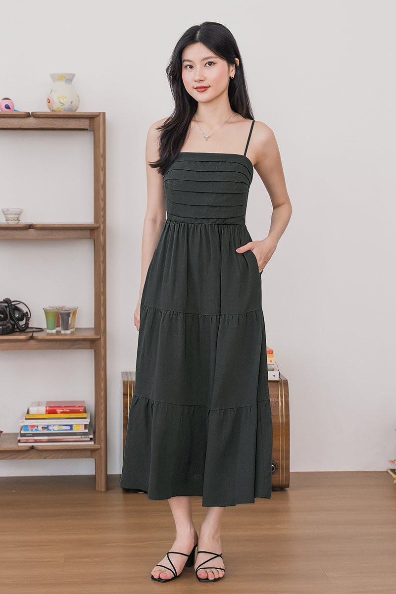 Jan Padded Folds Midaxi Dress V2 (Hunter Green)