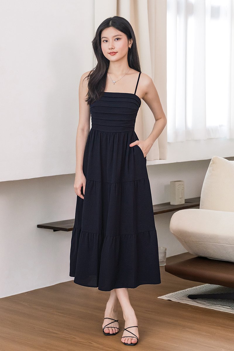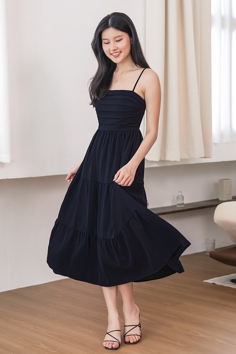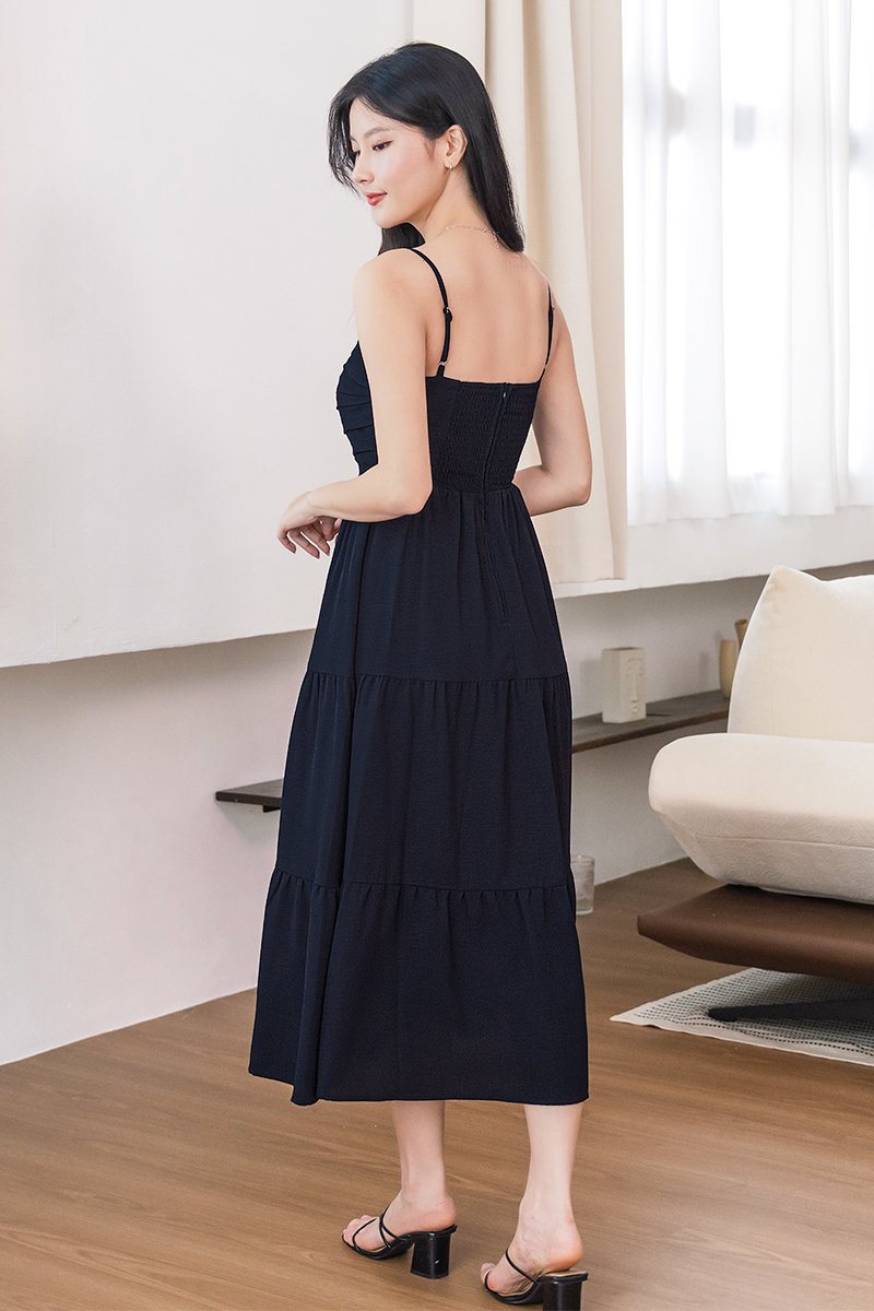 Jan Padded Folds Midaxi Dress V2 (Midnight)