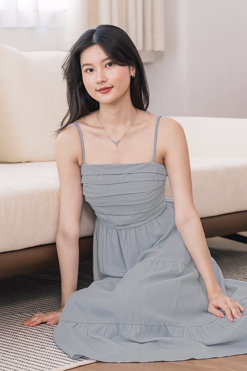Jan Padded Folds Midaxi Dress V2 (Misty Grey)