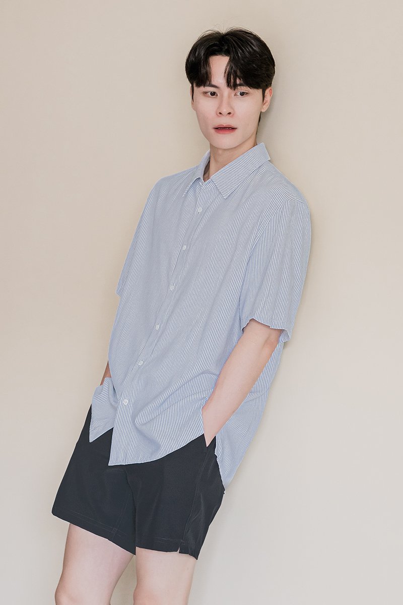 Joel Oversize Collar Shirt (Blue Stripes)