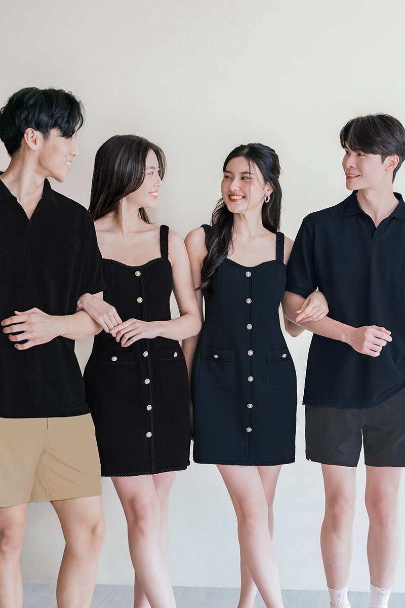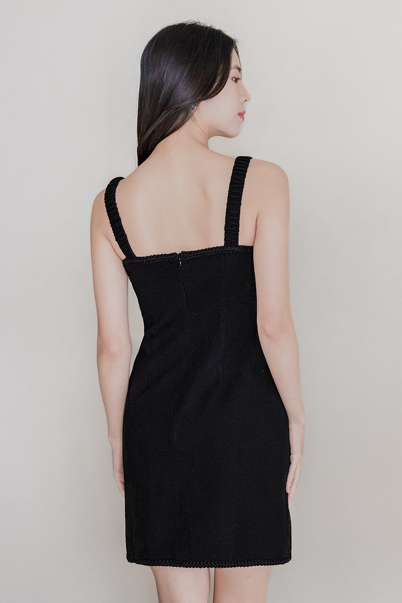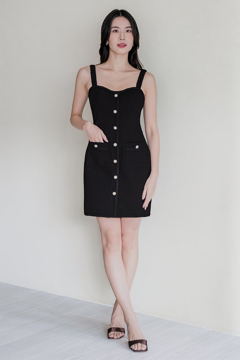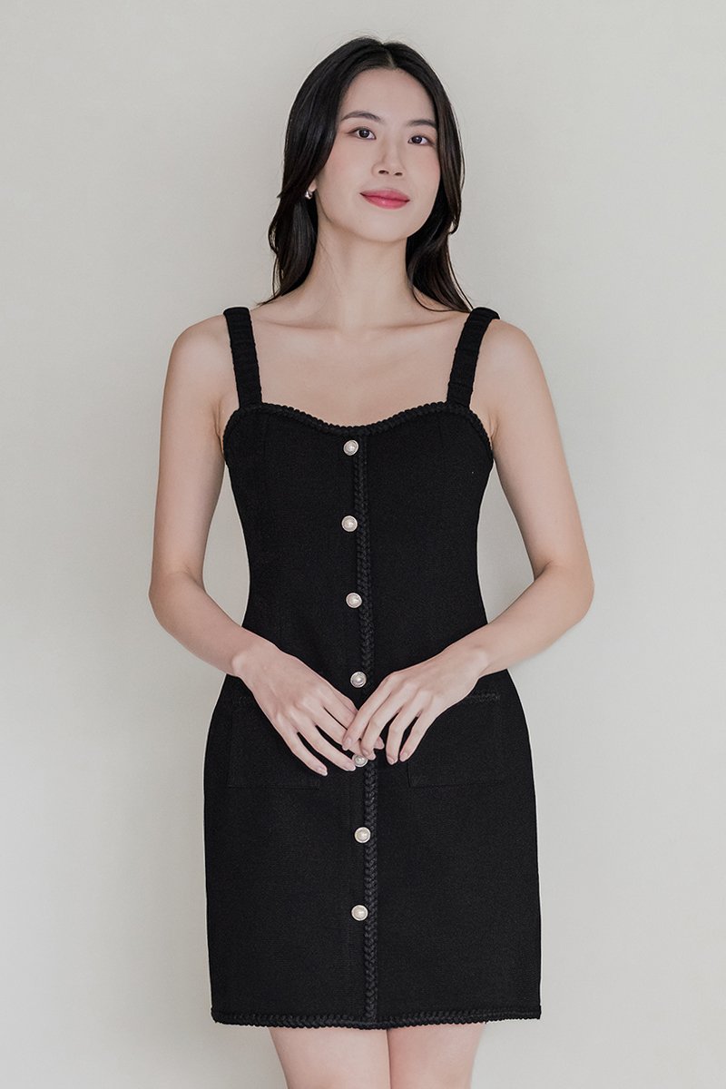 Kendall Padded Braided Trim Dress (Black)
