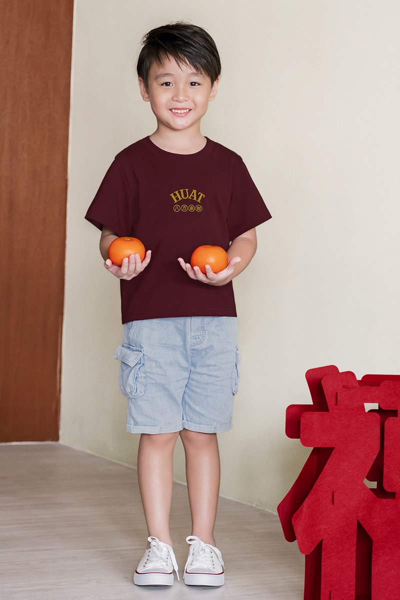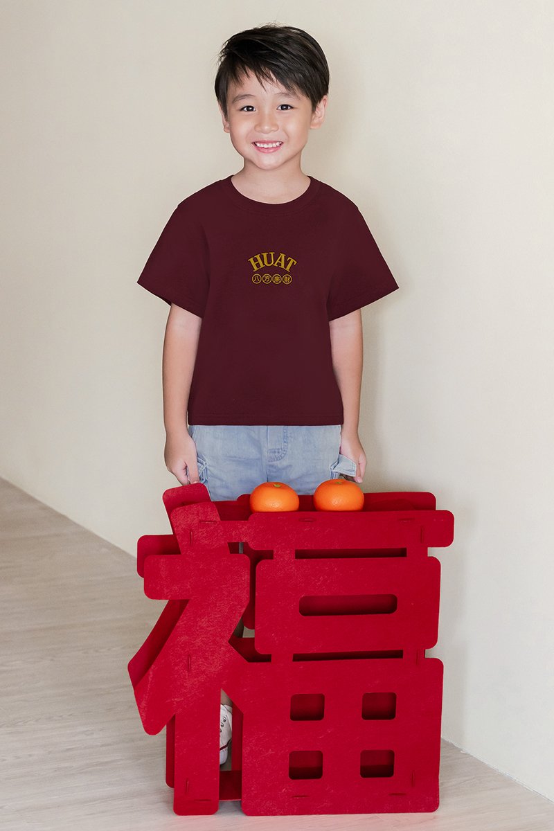 Your little ones will love - A unisex regular fit tee with a festive twist, featuring embroidered “HUAT” and “八方来财“ which translate into "Wealth Comes From All Directions". Our HUAT tee is for celebrating Chinese New Year in comfort and style with your loved ones - making every Chinese New Year moment bright and lively.