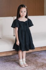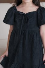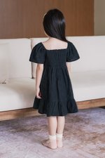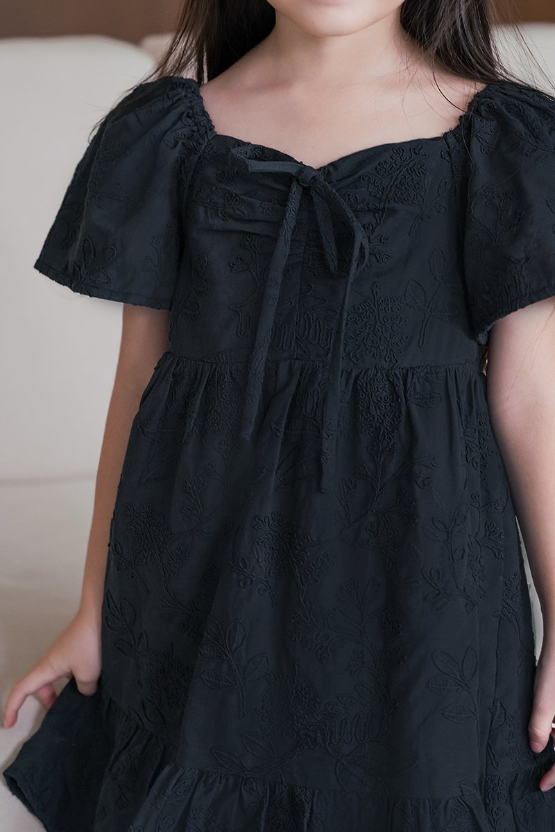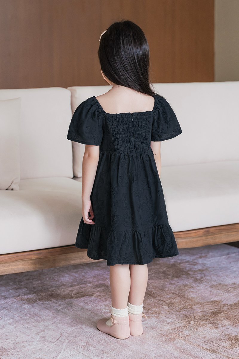 Kids Angel Ruched Flare Sleeve Dress (Midnight Embroidery)