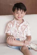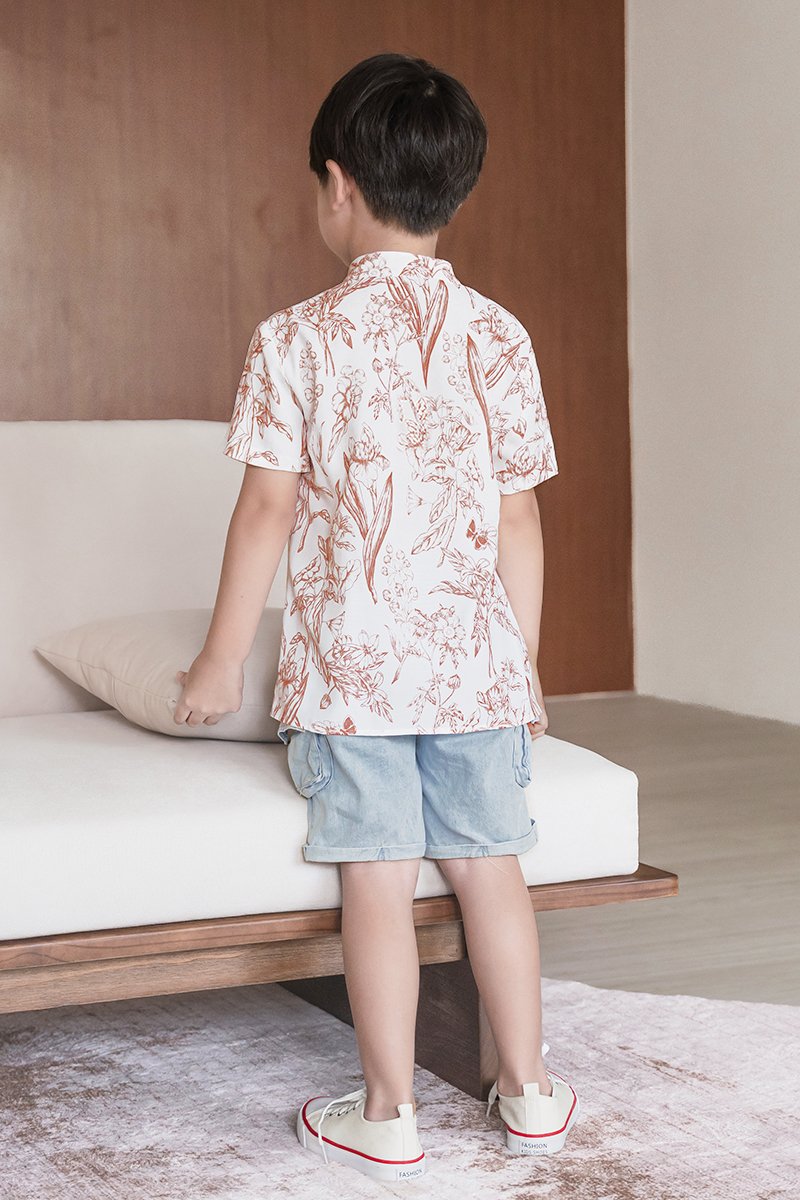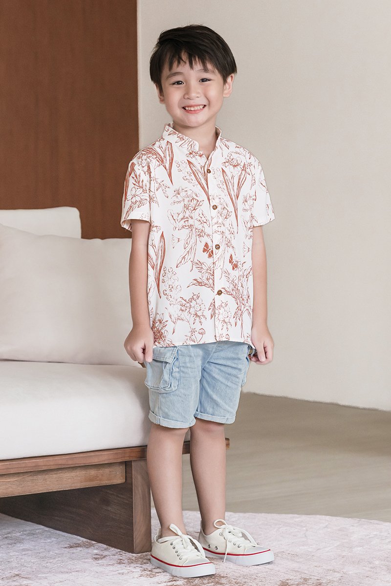 Kids Dane Mandarin Collar Shirt (Brick Red Enchanted Reverie)