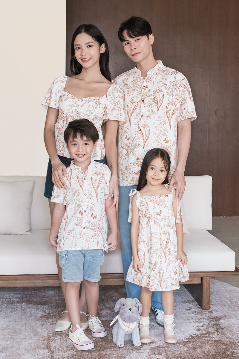Coordinated family outfits are always a hit! Dress your little one in this adorable mandarin collar shirt for a look that’s both stylish and comfortable, perfectly matching with siblings or grown-ups for picture-ready family moments.