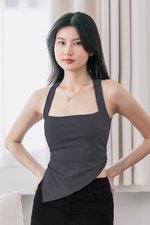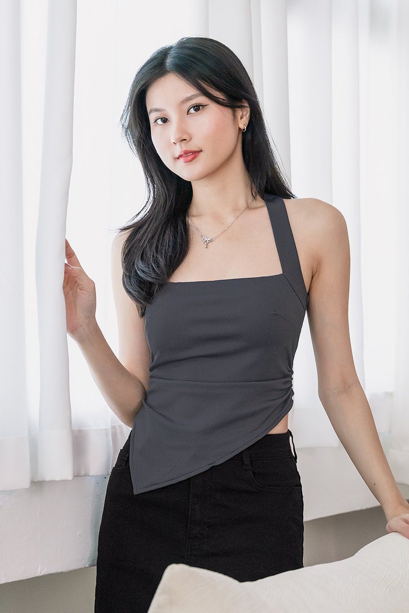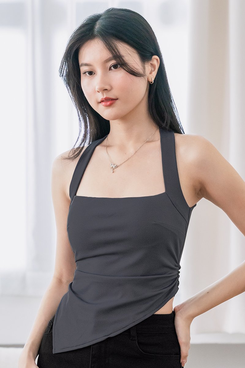 Kimberly Padded Halter Asymmetrical Hem Top (Shadow)