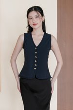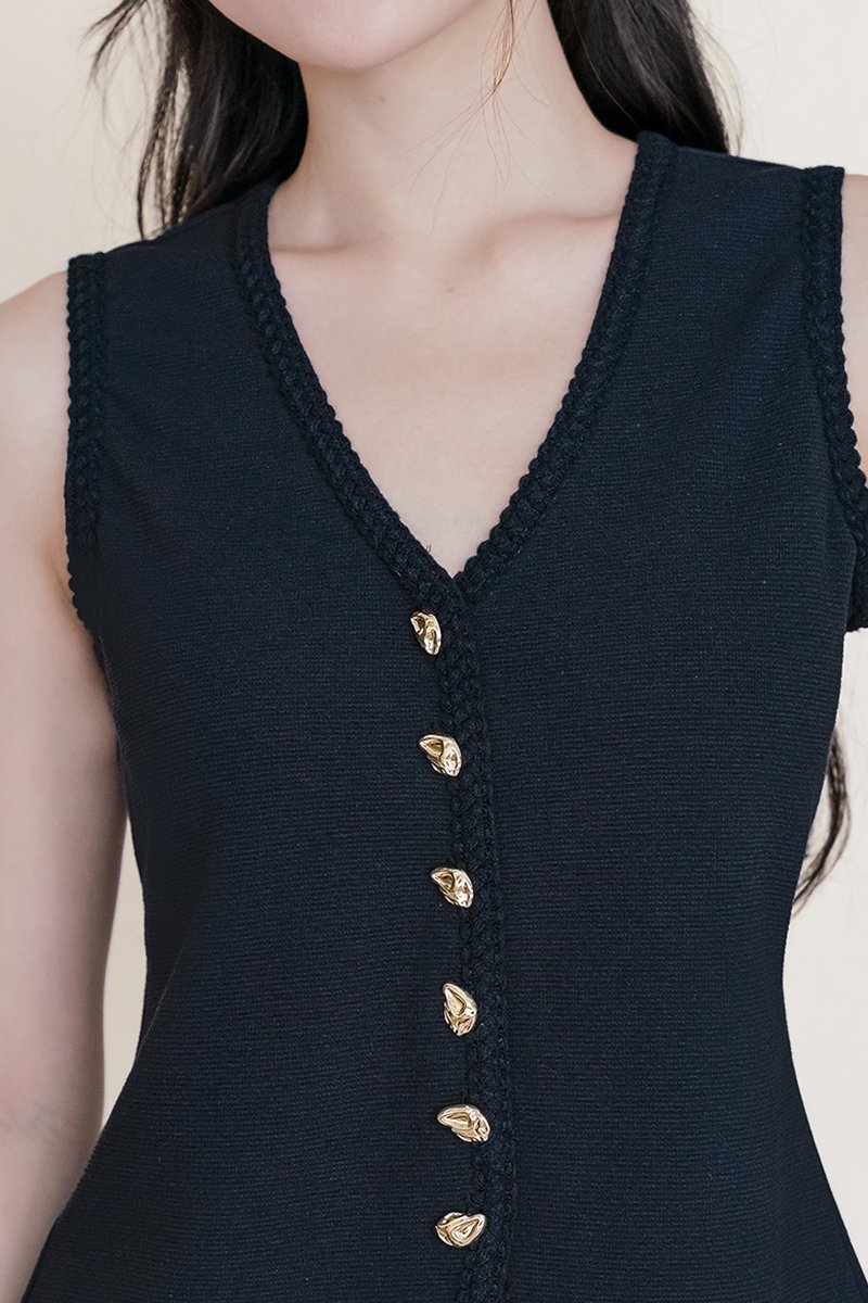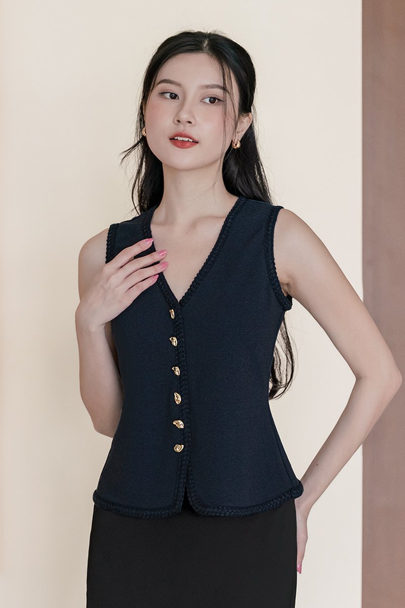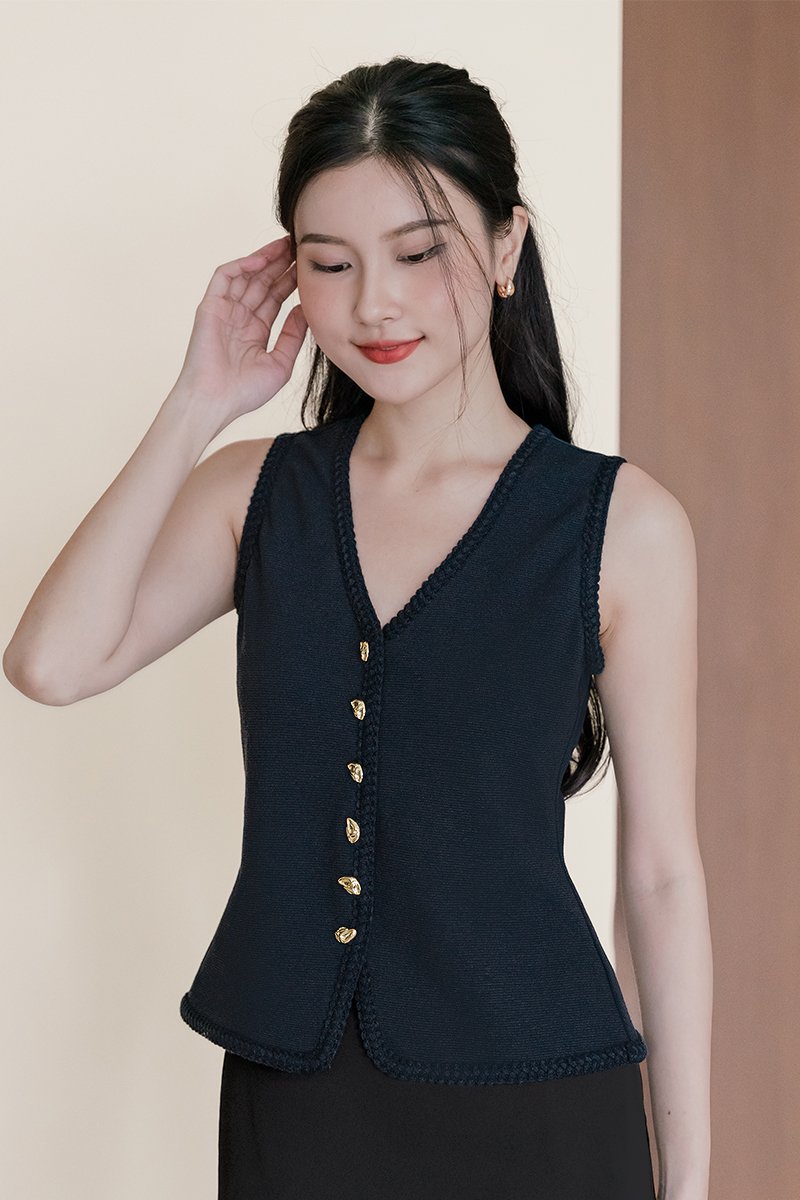 Kylie Braided Trim Knit Vest Top (Midnight)