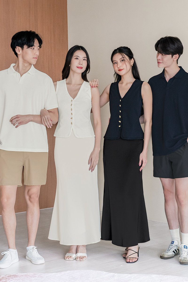 Kylie elevates a classic knit vest with subtle textured accents, blending timeless charm with contemporary texture to create a refined, versatile piece that layers effortlessly and adds understated elegance to both casual and polished looks.