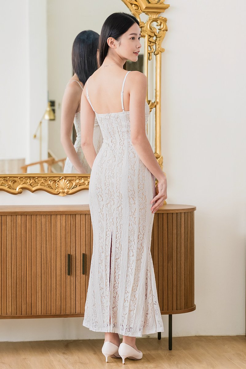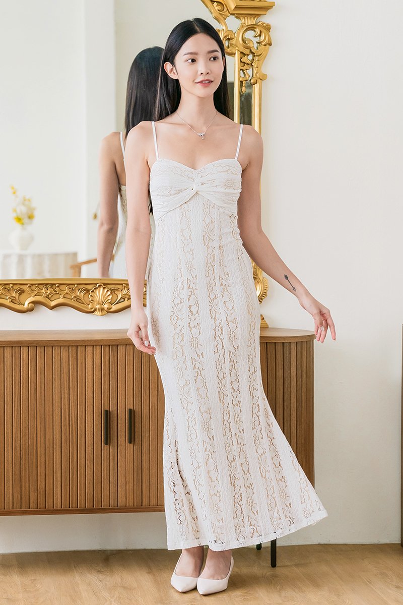 Lacey Padded Sweetheart Mermaid Maxi Dress (White)