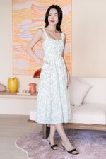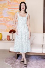 Laura Padded Ruched Strap Midi Dress (Columbia Blue Opulent)