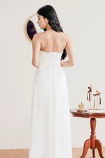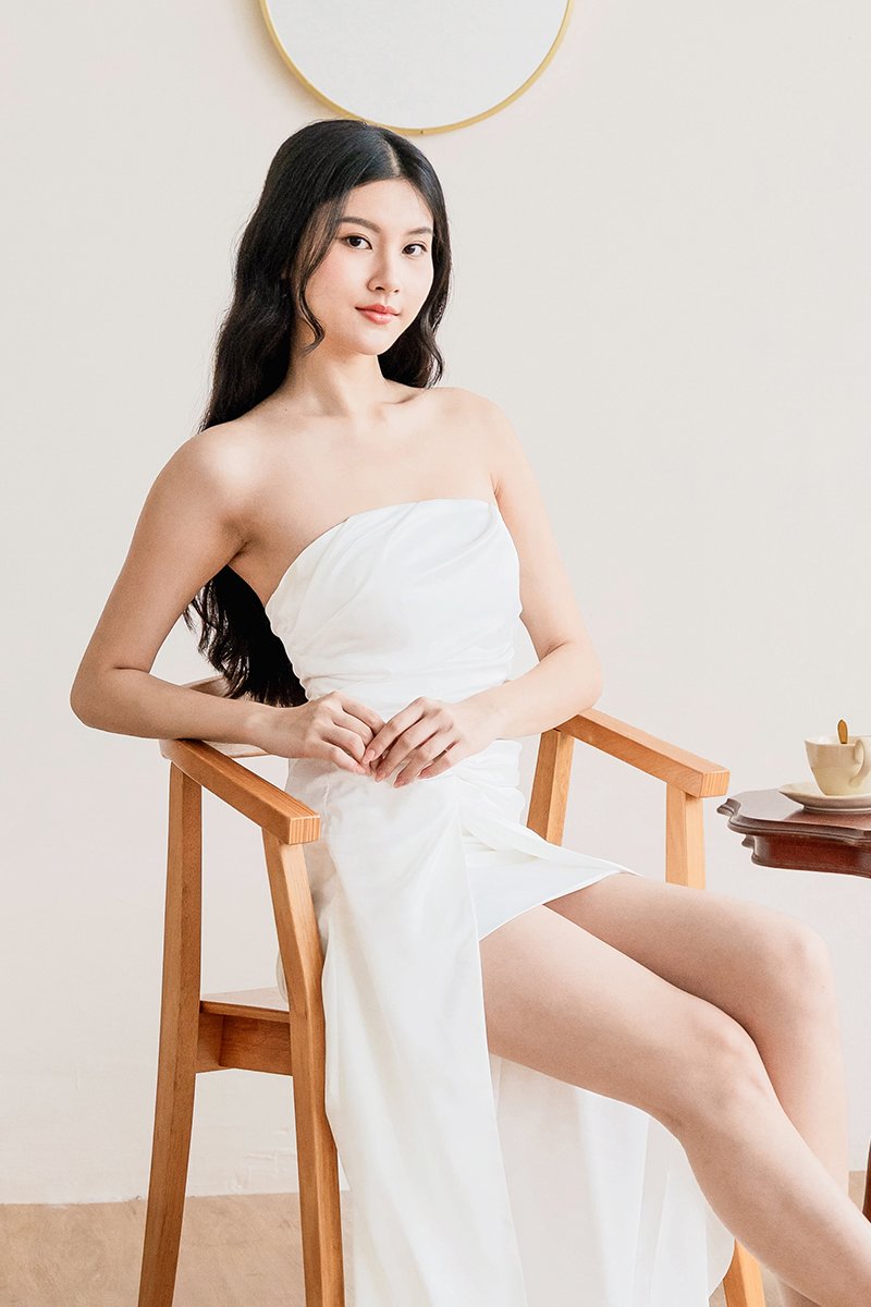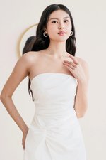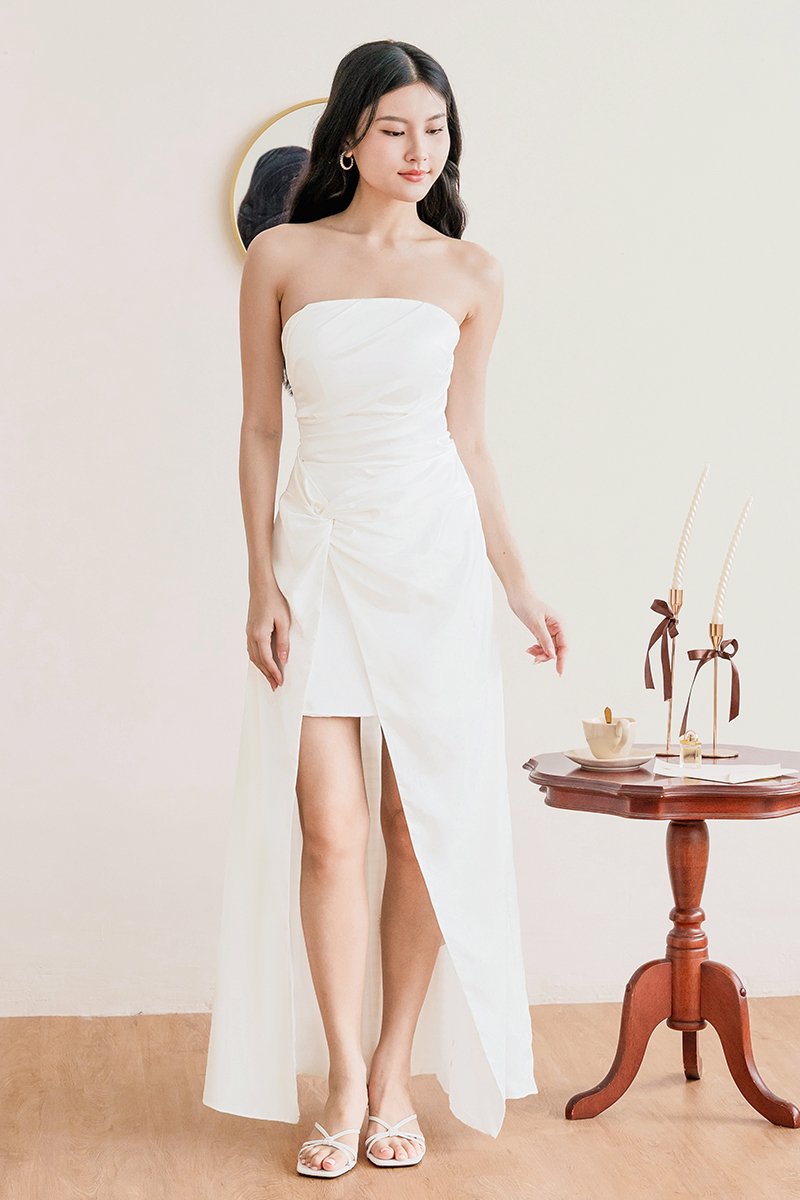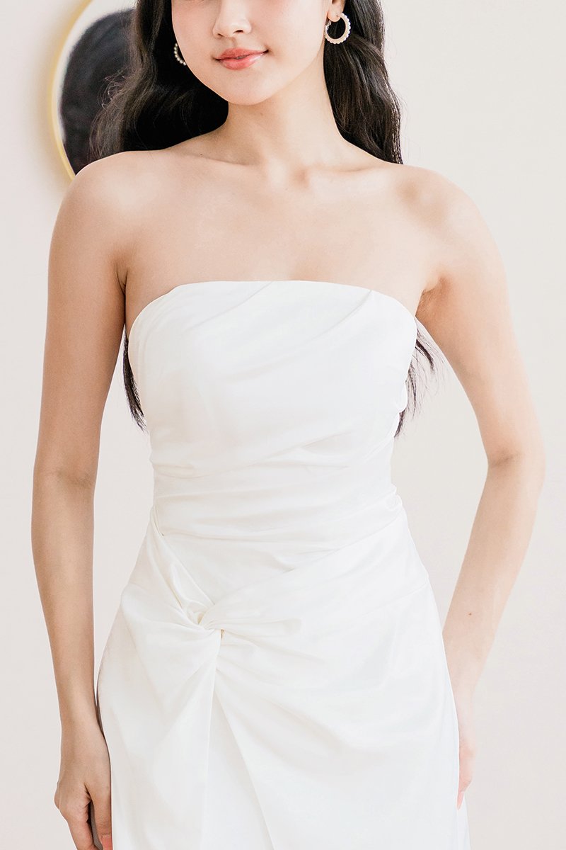 Lucinda Padded Satin Tube Draped Back Dress (White)