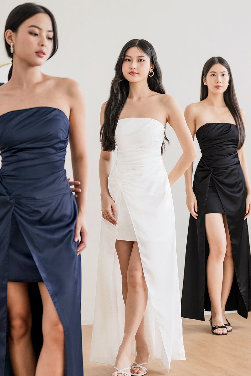 Settling for ordinary is a no-go - make an entrance with our Lucinda for your upcoming event. Crafted in luxe satin, Lucinda is designed with flowing train, accented with ruched bust and twisted knot detail. Show off your legs as you walk and be ready to get compliments throughout the night.