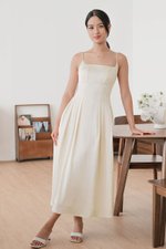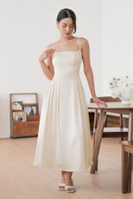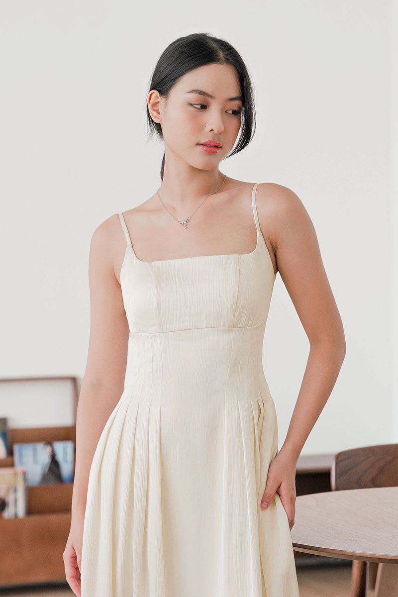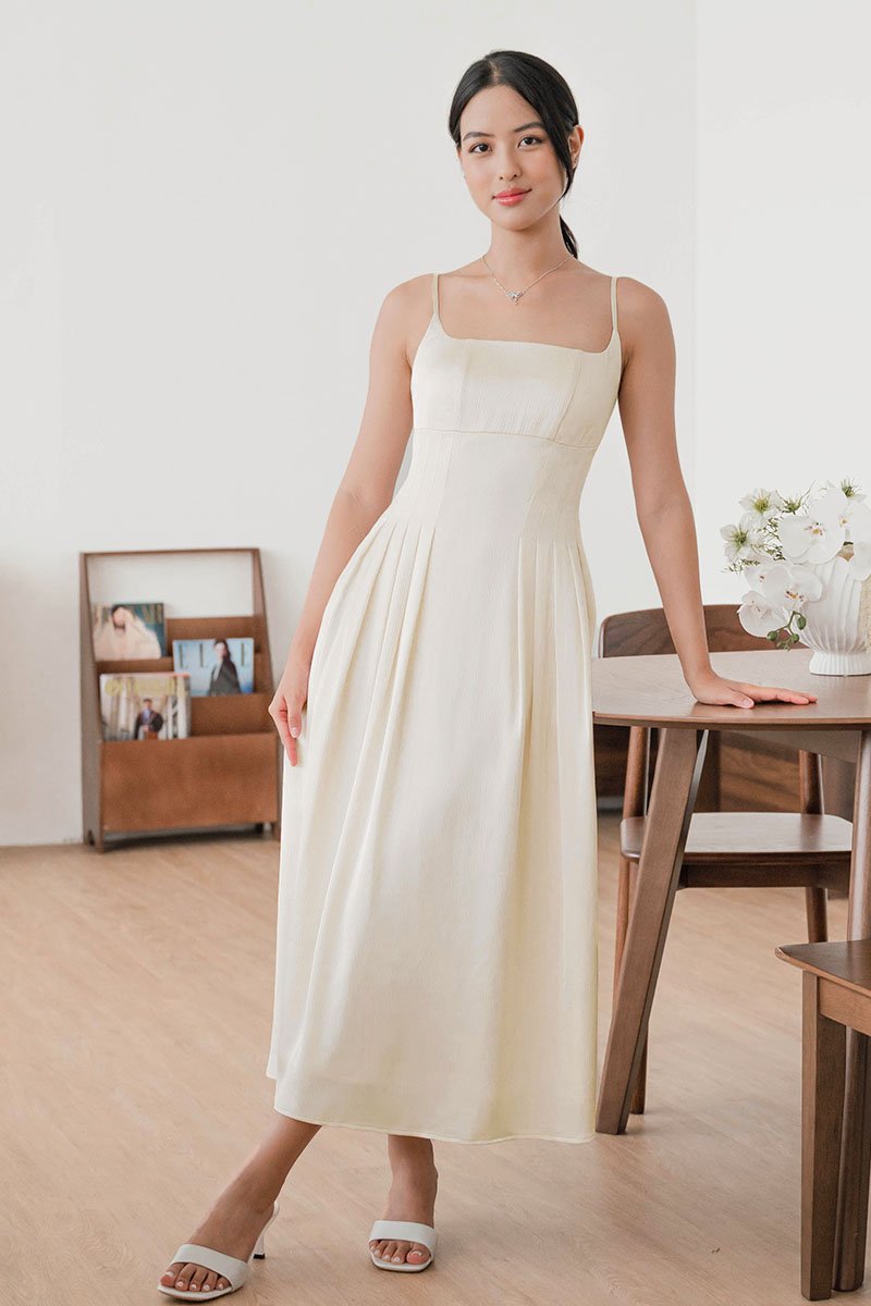 A timeless midaxi dress with subtle detailing for effortless elegance. The pintuck detail along the underbust add structure while the flowing A-line silhouette creates a flattering, feminine shape, perfect for both day and evening occasions.