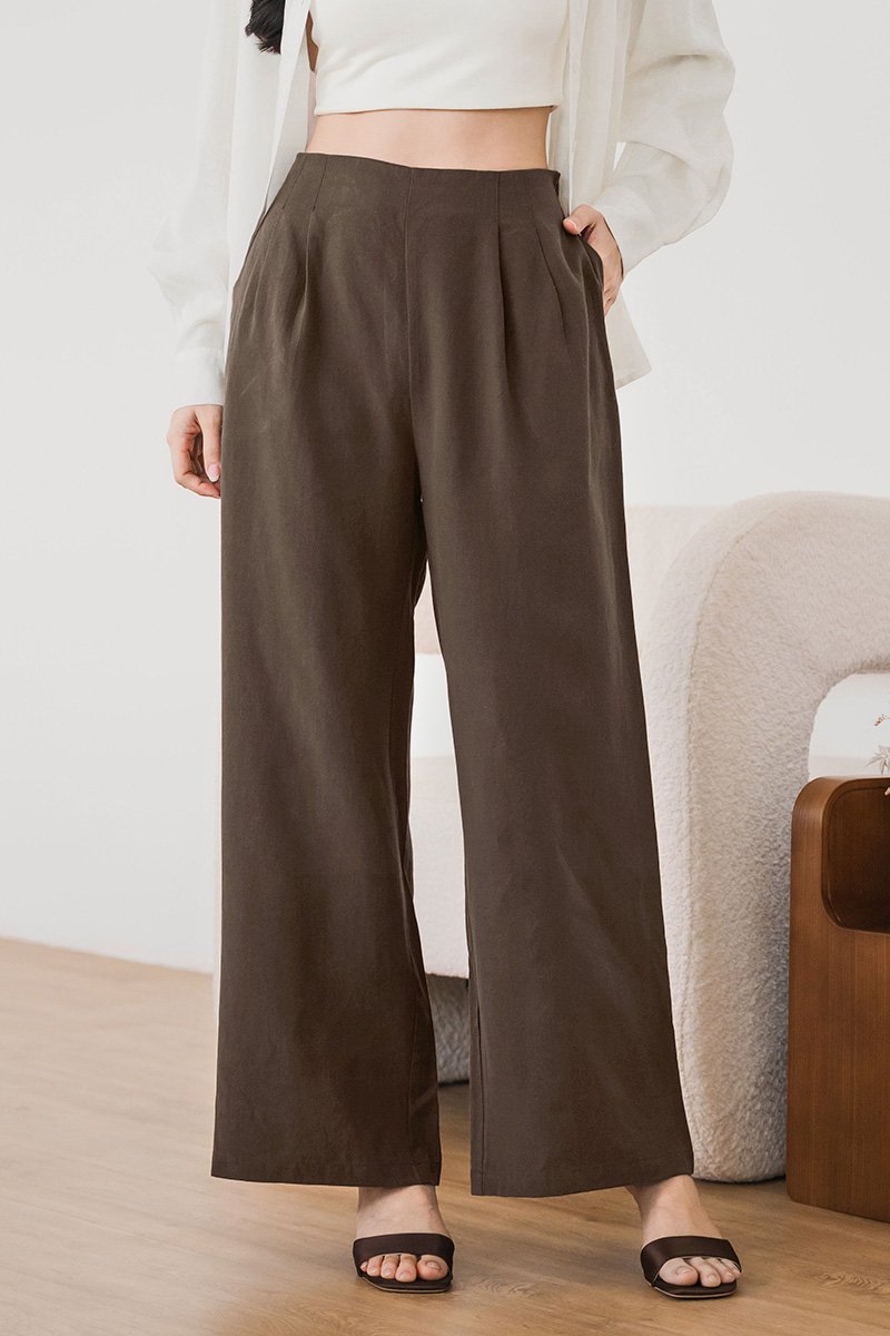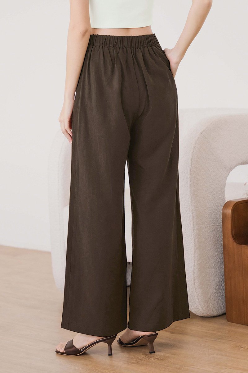 Noah Tencel Linen Wide Leg Pants - Petite (Coffee)