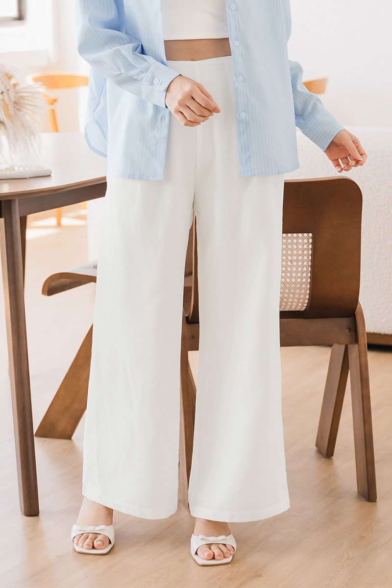 Revamp your workwear rotation with this pair of high-waisted wide leg pants - thoughtfully designed with high rise to fit all heights comfortably. Exudes an effortlessly chic look with clean lines, flattering cut and premium fabric through your daily routines.