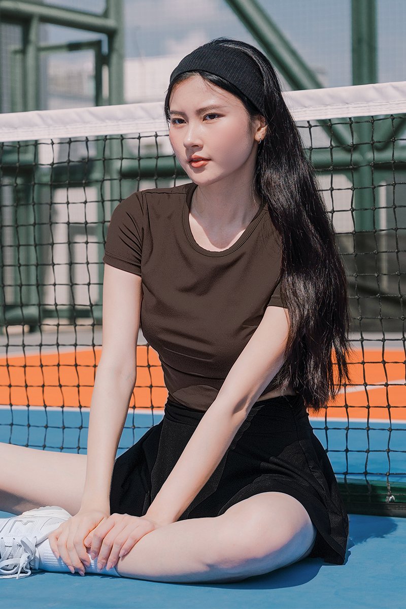 Nova UV50+ Padded Ruched Baby Tee (Coffee)